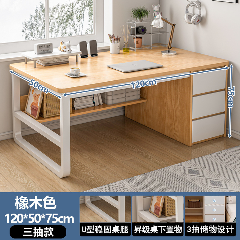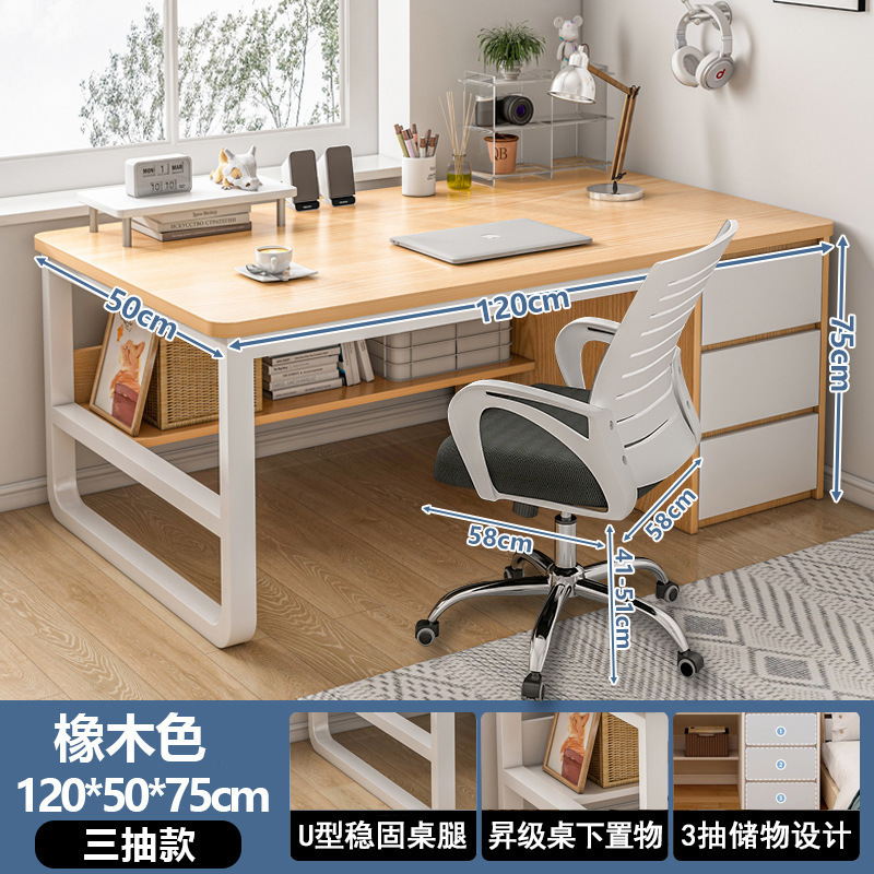 • [업그레이드된 서랍 3개 + 컴퓨터 의자] 120CM 오크 컬러