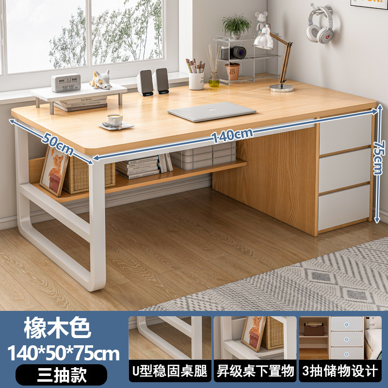 • [업그레이드된 서랍 3개 + 컴퓨터 의자] 140CM 오크 컬러