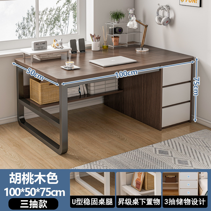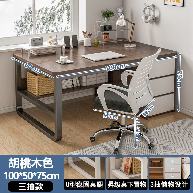 • [업그레이드된 서랍 3개 + 컴퓨터 의자] 100CM 월넛 컬러