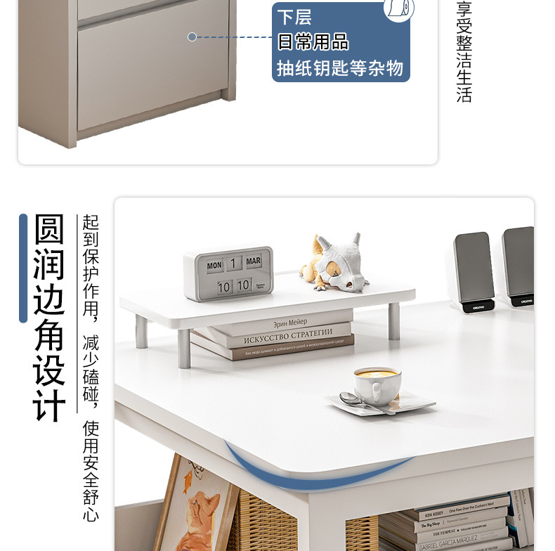 • [업그레이드된 3개 드로우] 100*50*75CM 웜화이트