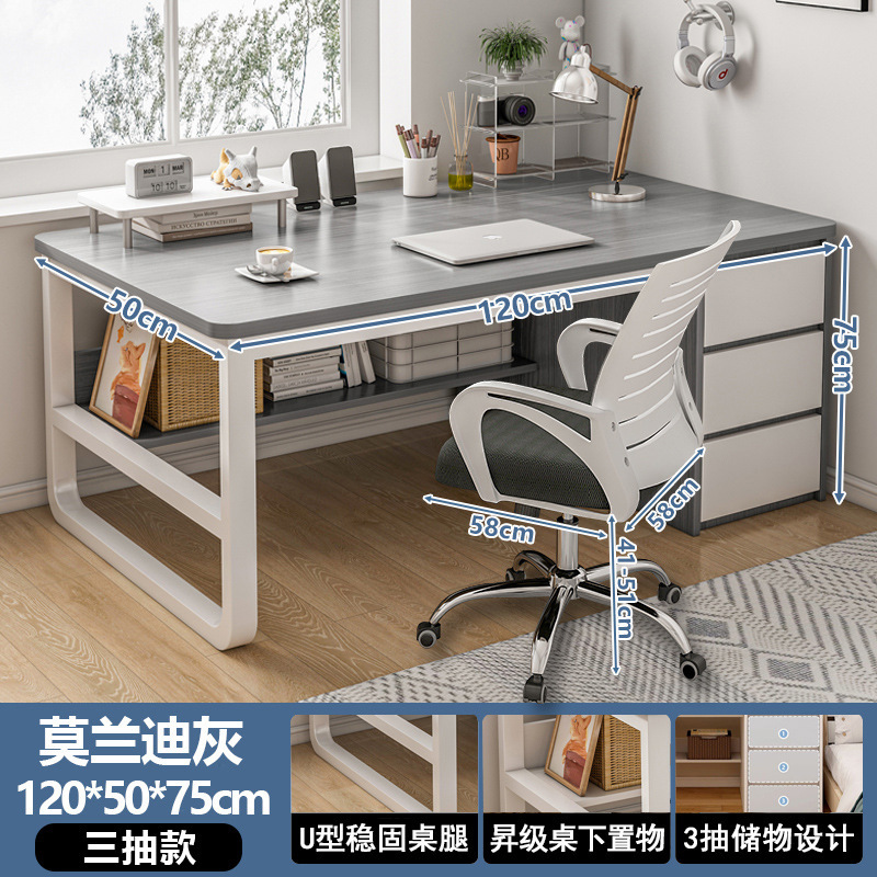 • [업그레이드된 서랍 3개 + 컴퓨터 의자] 120CM 모란디 그레이