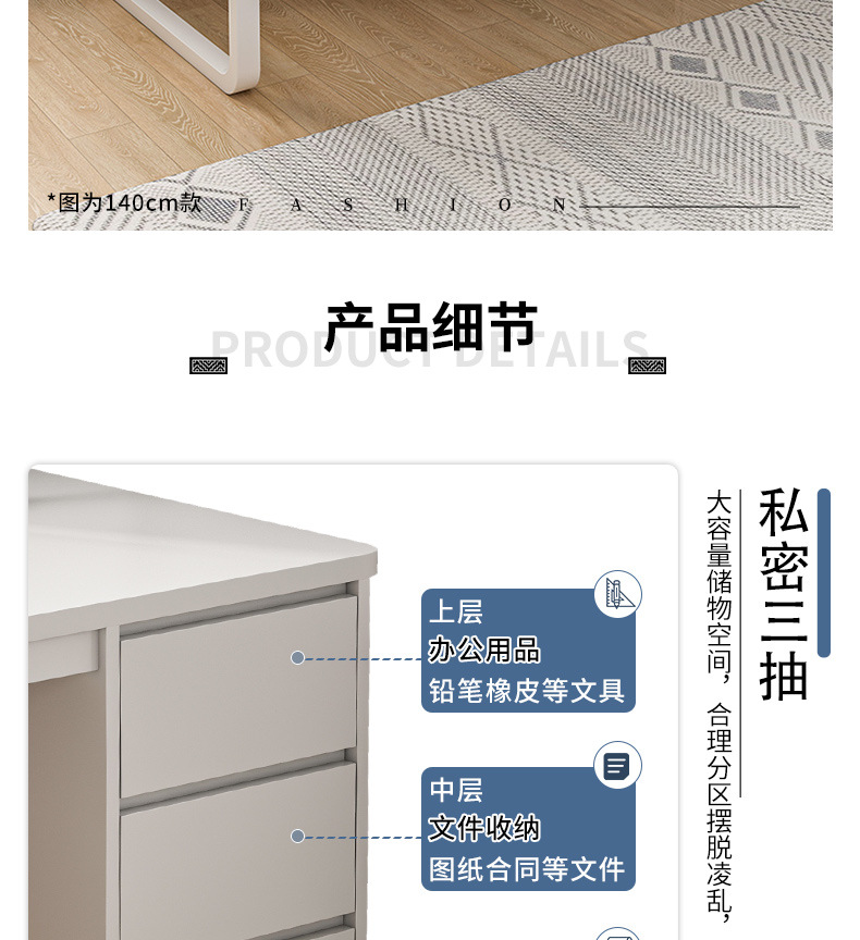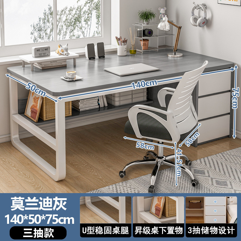 • [업그레이드된 서랍 3개 + 컴퓨터 의자] 140CM 모란디 그레이