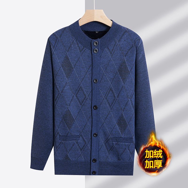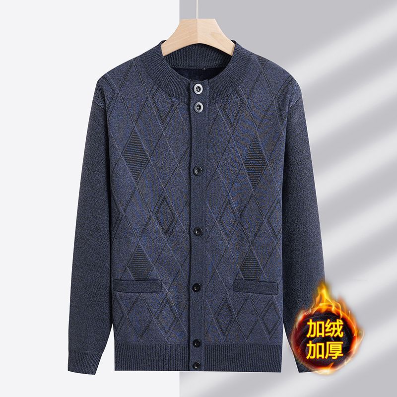 중년 및 노인 남성 카디건 스웨터 가을 스웨터 아버지 가을과 겨울 옷 할아버지 기모 두꺼운 따뜻한 코트스토어 가기