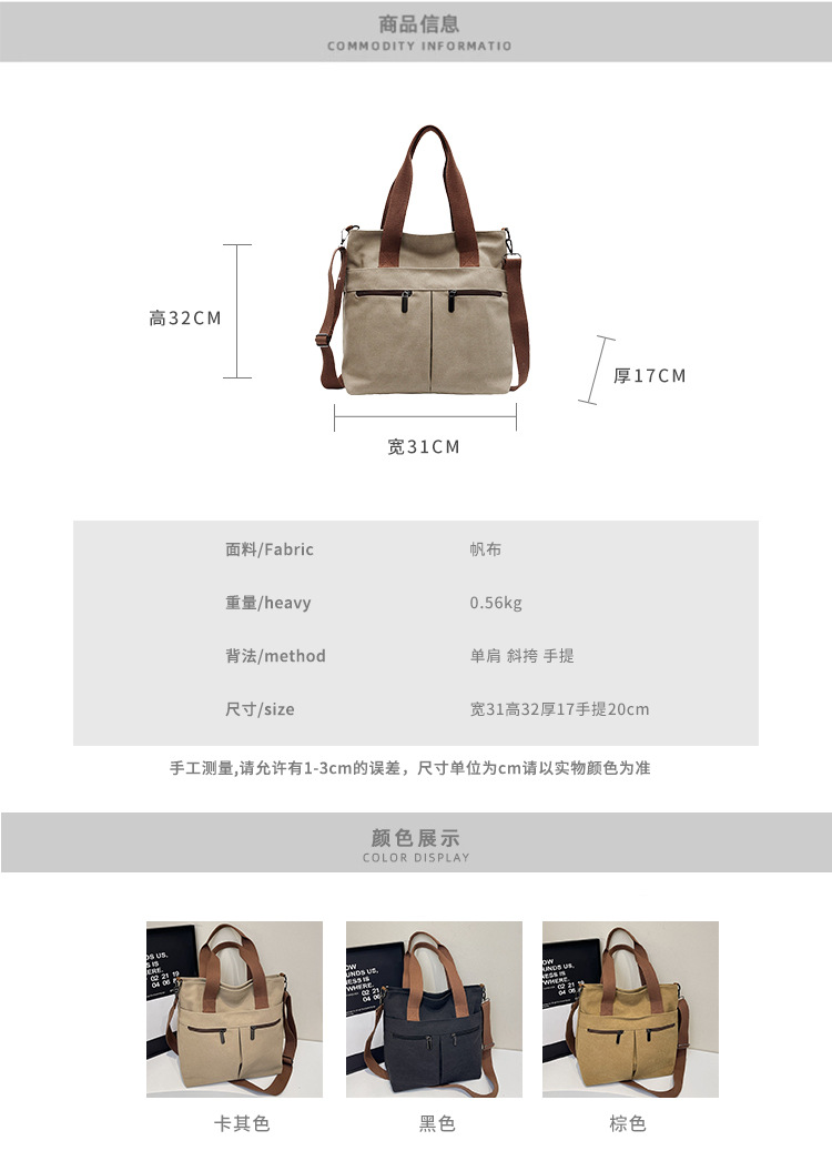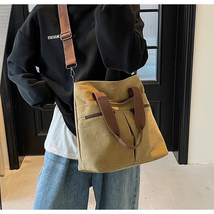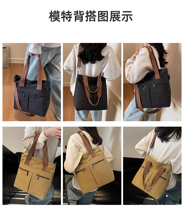 국경 간 두꺼운 캔버스 가방 일본 스타일 간단한 통근 대용량 토트 백 손 운반 컴퓨터 가방 어깨 크로스 바디 백