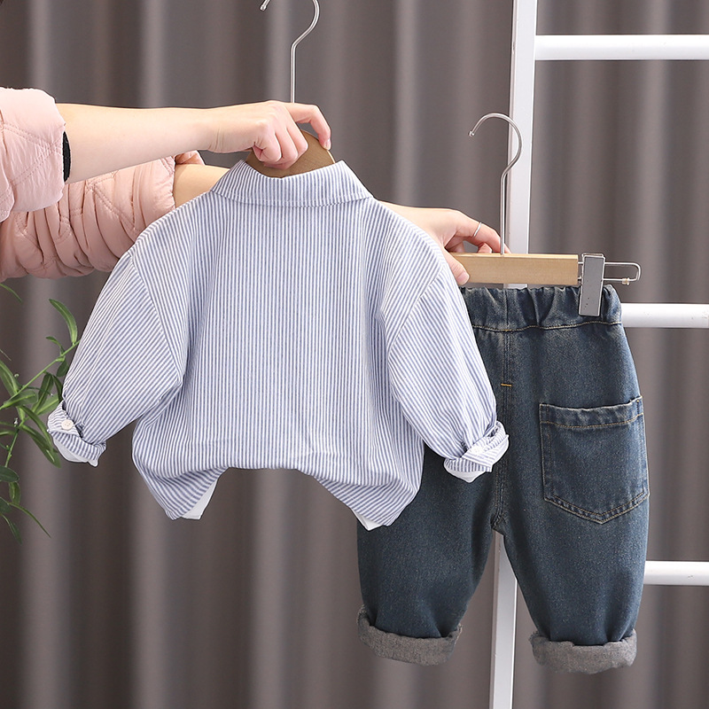 소년의 봄 셔츠 3 종 세트 2025 새로운 줄무늬 만화 셔츠 아기의 봄 옷 어린이 봄과 가을 세트스토어 가기