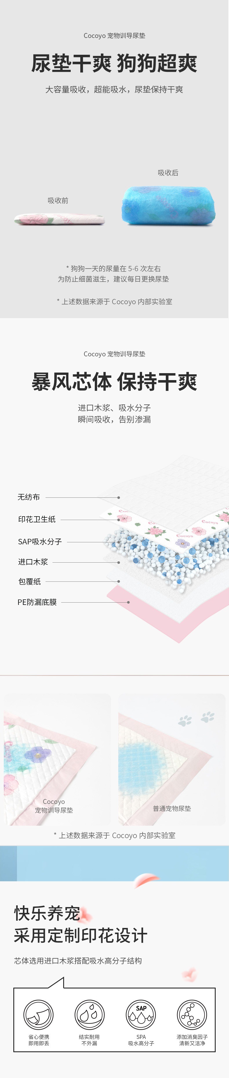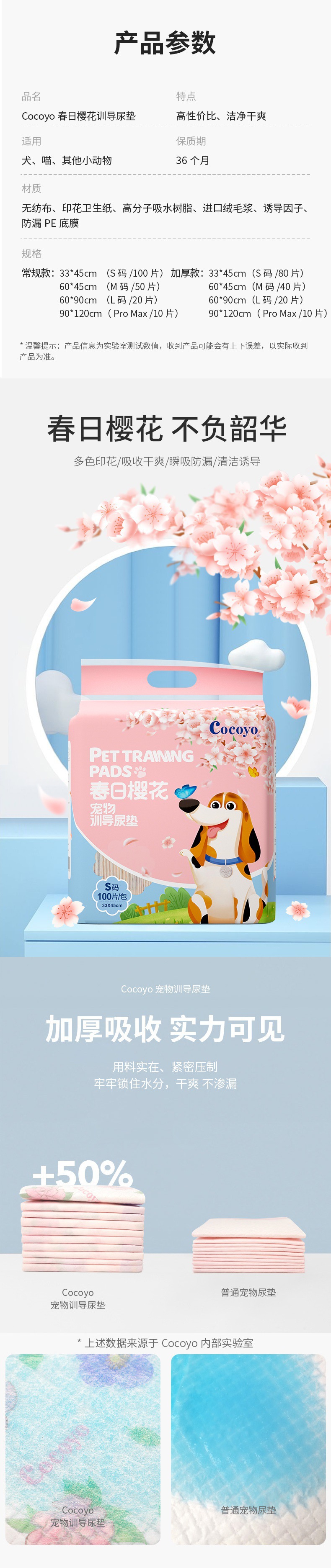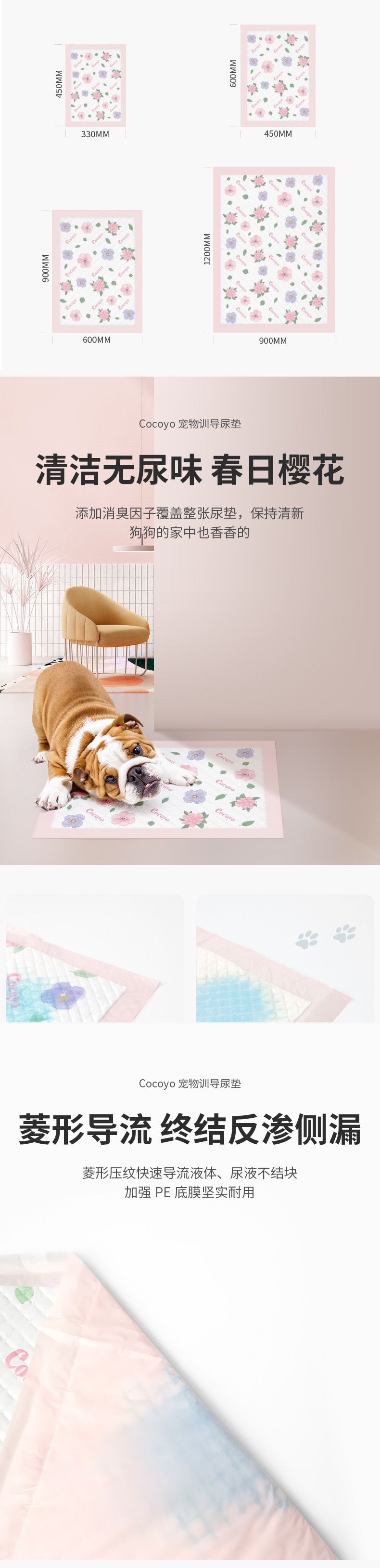 코코요 개 소변 패드 두껍게 흡수 된 개 소변 패드 훈련 개 기저귀 소변 패드 개 벚꽃 애완 동물 소변 패드
