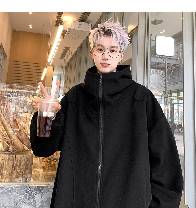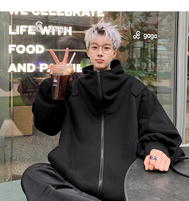 화이트 카디건 스웨터 남자 2025 년 봄과 가을 새로운 하이 엔드 느낌 더피 핸섬 미국 헤비 루즈 후드 재킷스토어 가기