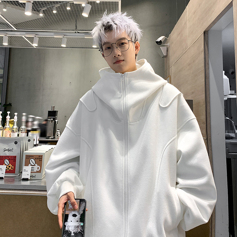 화이트 카디건 스웨터 남자 2025 년 봄과 가을 새로운 하이 엔드 느낌 더피 핸섬 미국 헤비 루즈 후드 재킷