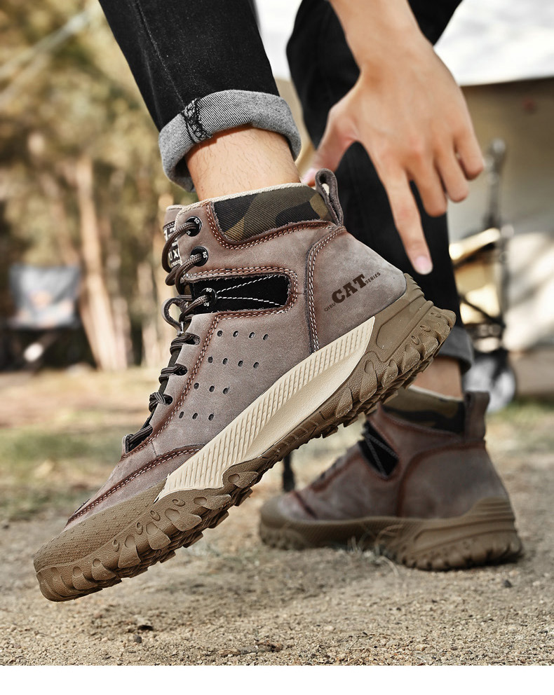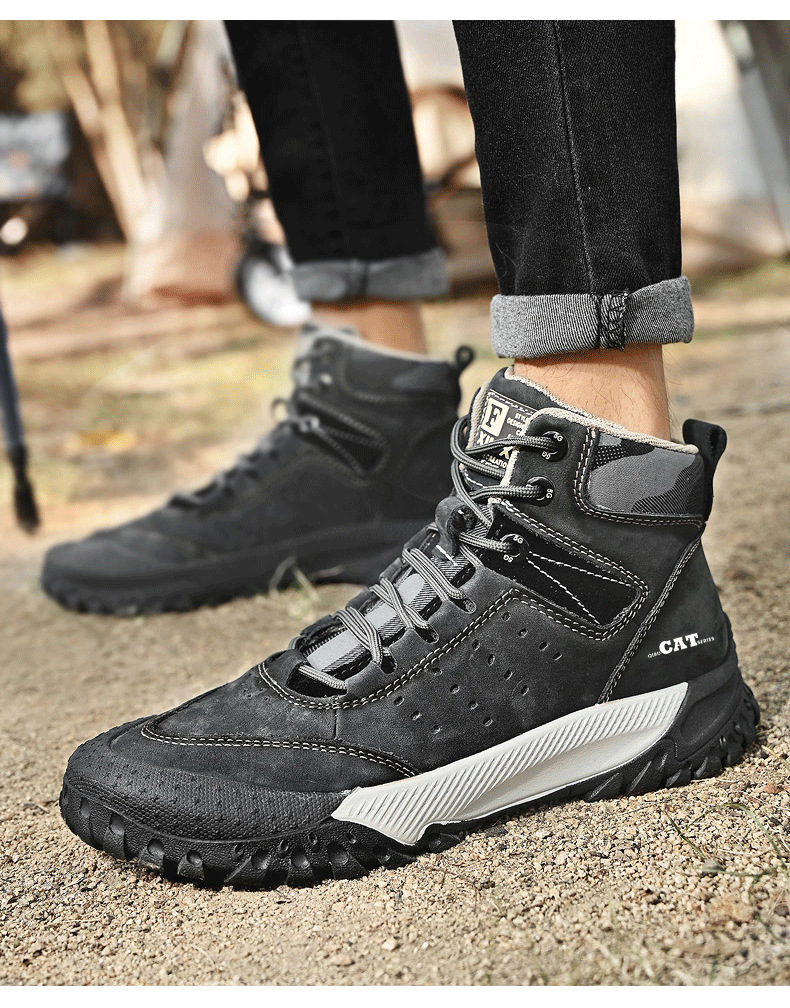 미드 탑 캐주얼 남성 신발 겨울 기모 정품 가죽 플랫 야외 두꺼운 유일한 미끄럼 방지 레이스 업 운동화 스니커즈 툴링 신발