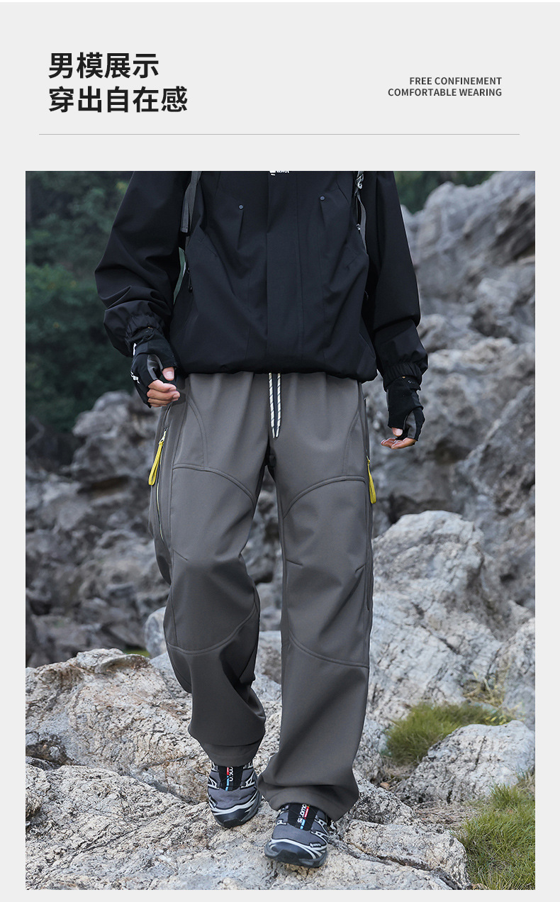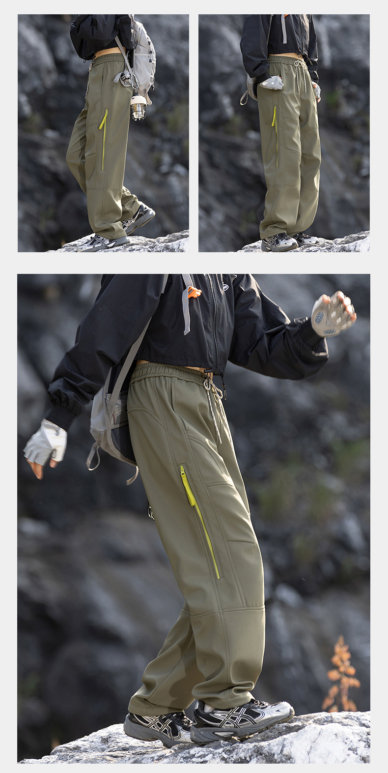 IZEXX 패션 브랜드 봄 야외 스포츠 충전 바지 남자와 여자의 사이드 지퍼 통기성 방수 스트레이트 캐주얼 바지