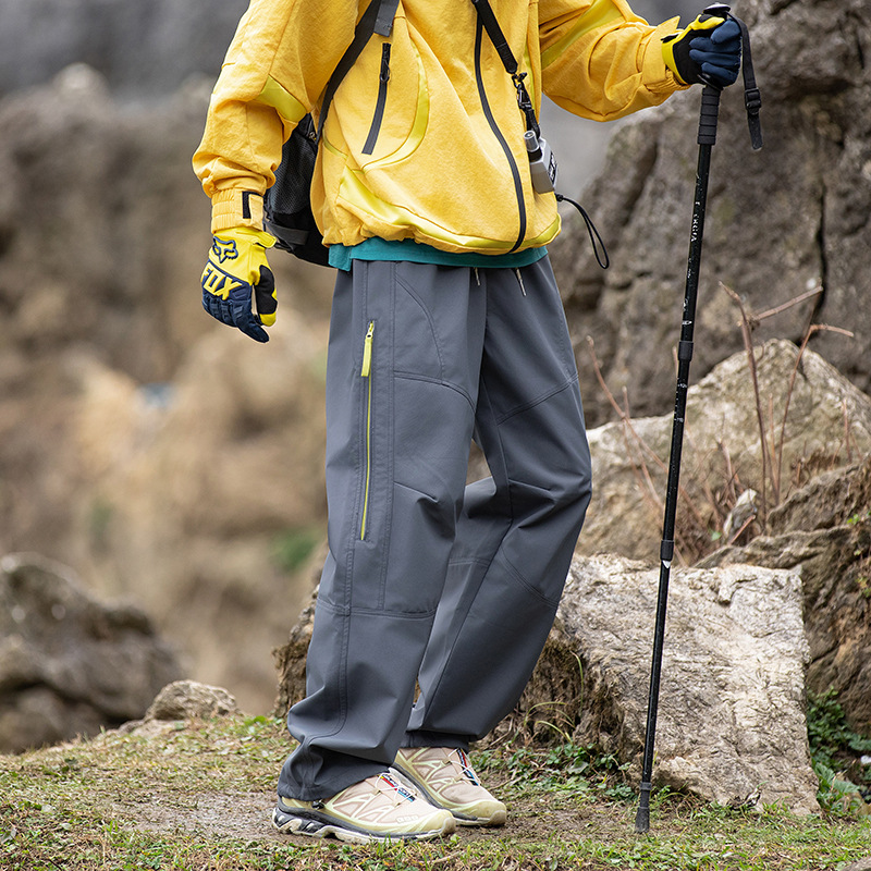 IZEXX 패션 브랜드 봄 야외 스포츠 충전 바지 남자와 여자의 사이드 지퍼 통기성 방수 스트레이트 캐주얼 바지스토어 가기