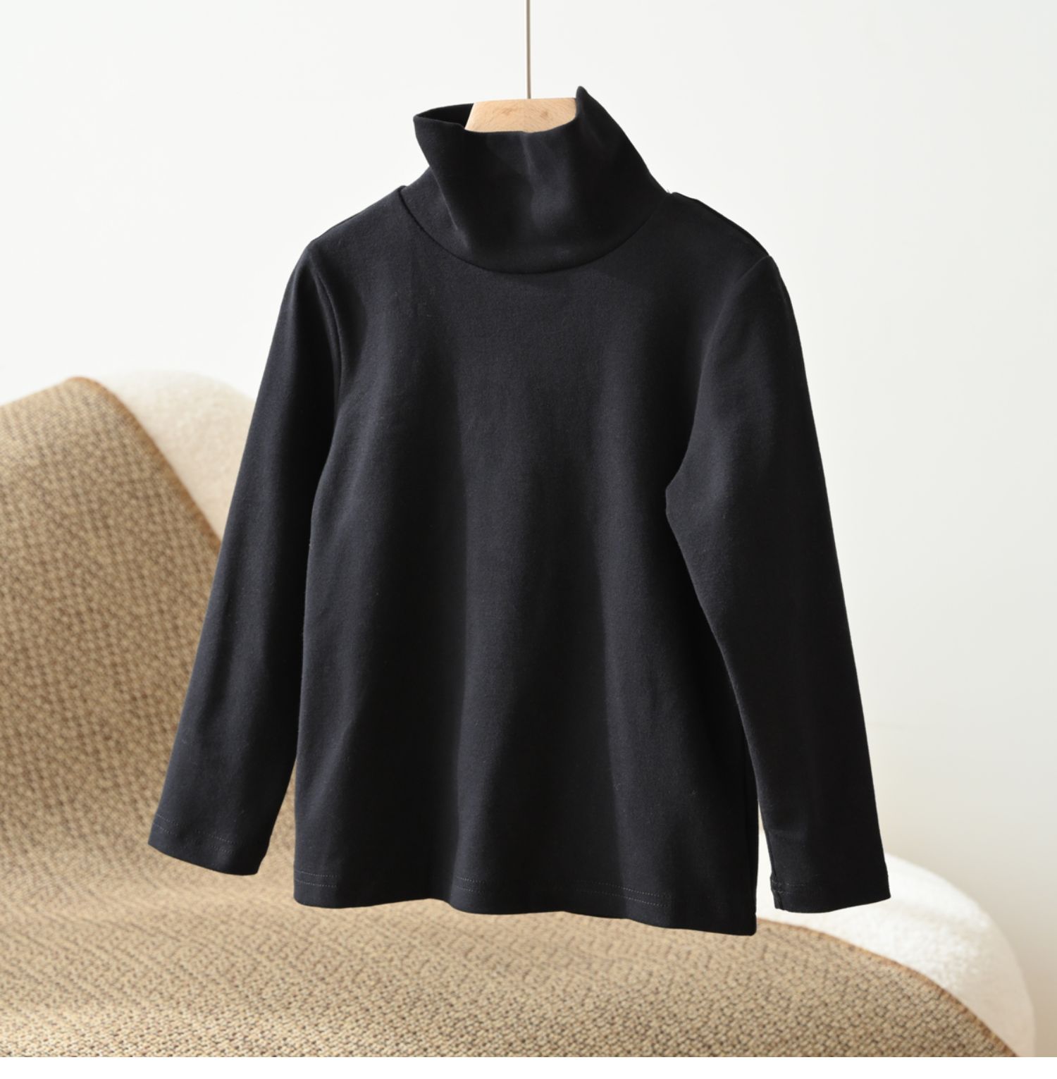 儿童秋冬纯棉高领打底衫男童女童简约学生长袖T恤纯色黑白色上衣24RMB立即购买>