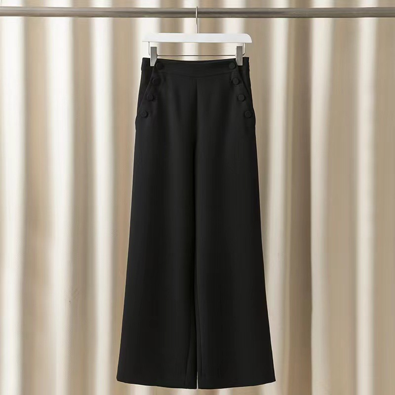 Nanyou 하이 엔드 여성 의류 도매 새로운 아세트산 드레이프 넓은 다리 하이 웨이스트 마이크로 팬츠 슬림 심플스토어 가기