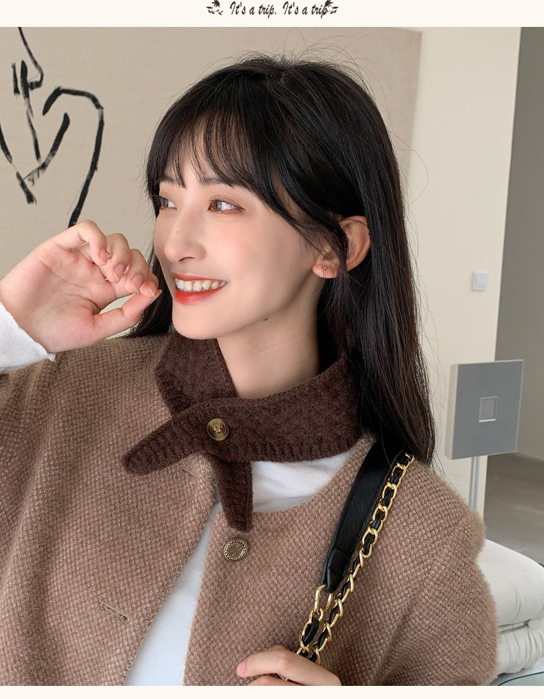 가을과 겨울 새로운 니트 작은 스카프 한국식 올 매치 캔디 컬러 버튼 목 세트 장식 가짜 칼라 작은 스카프