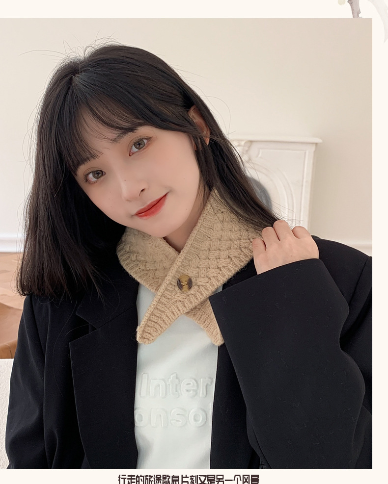 가을과 겨울 새로운 니트 작은 스카프 한국식 올 매치 캔디 컬러 버튼 목 세트 장식 가짜 칼라 작은 스카프스토어 가기