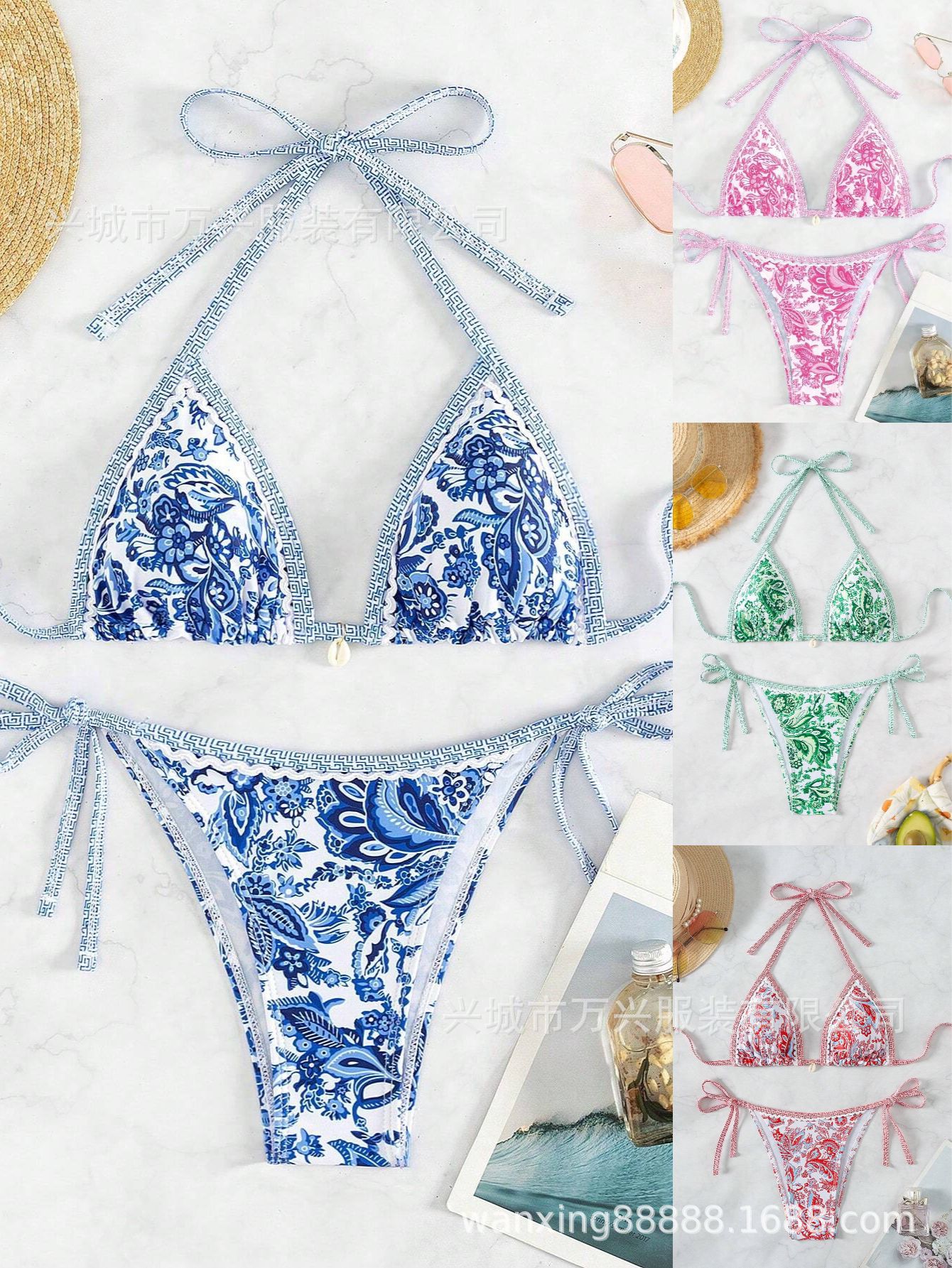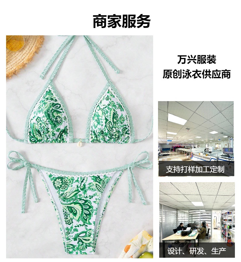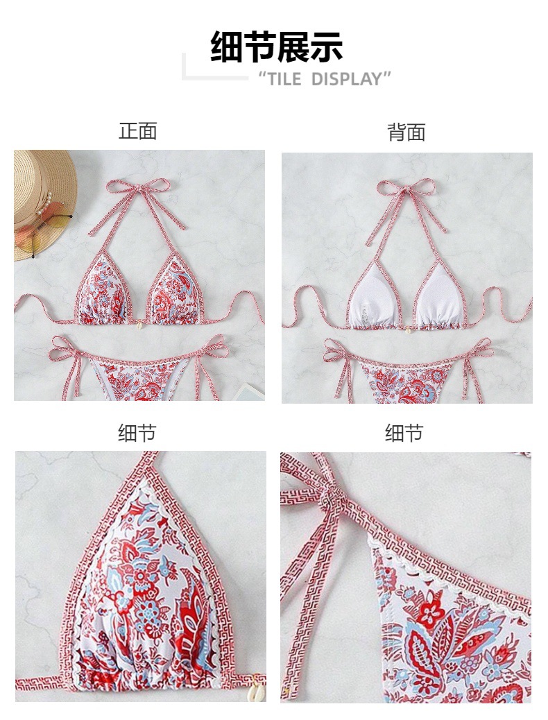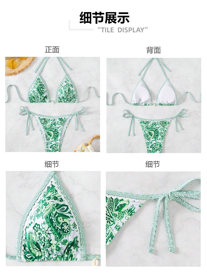 여성 수영복 2025 신상품 유럽 및 미국 인기 청화백자 프린트 끈 묶는 섹시 비키니 분리형 해외판스토어 가기