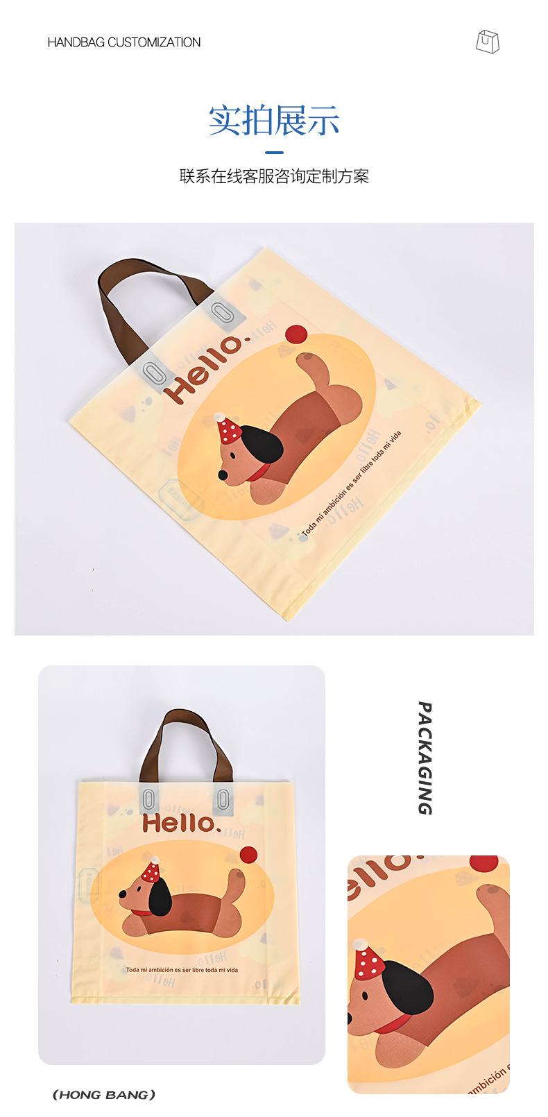 두꺼운 의류 매장용 토트백, 반투명 짧은 포장백, 로고 인쇄 선물용 액세서리 가방, 휴대용 쇼핑백