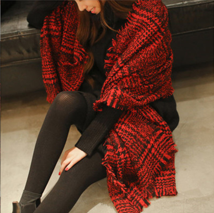새로운 한국 겨울 스카프 여성의 두꺼운 따뜻한 스카프 올 매치 롱 하운드 투스 스카프 이중 사용 목도리