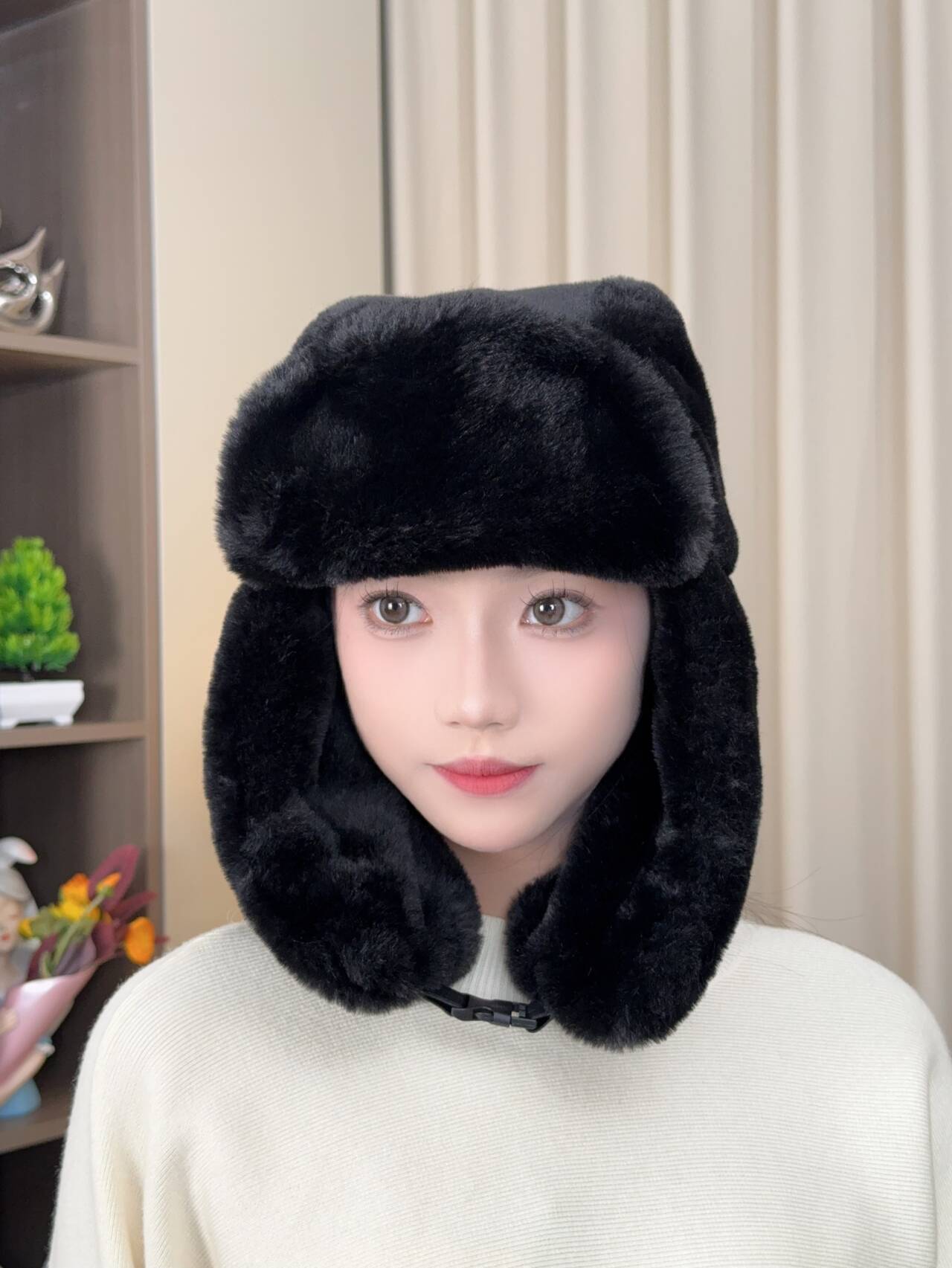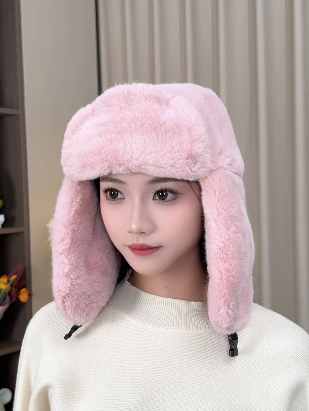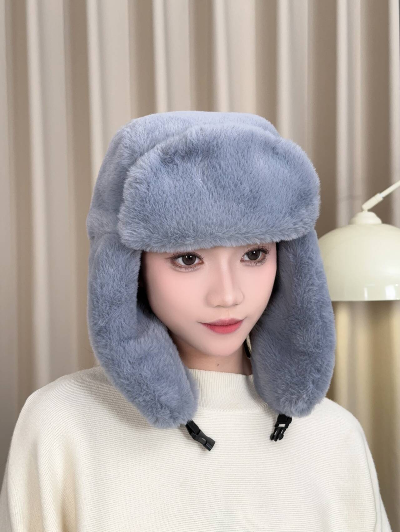 겨울 여성 모자 레이 펑 모자 패션 야외 승마 따뜻한 모자 모조 토끼 머리 방풍 차가운 귀 목 보호 모자스토어 가기