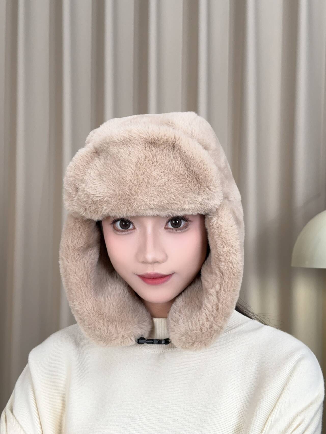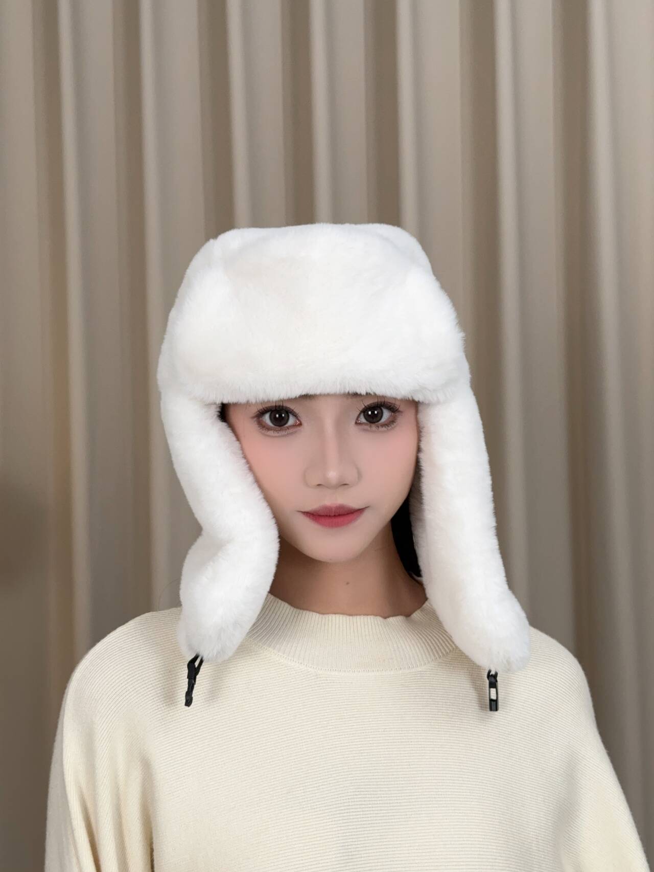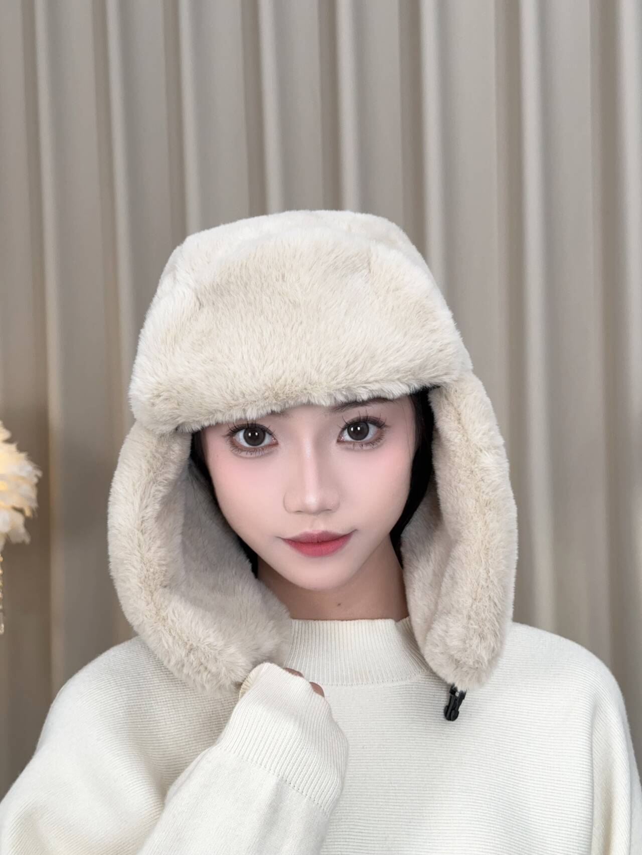 겨울 여성 모자 레이 펑 모자 패션 야외 승마 따뜻한 모자 모조 토끼 머리 방풍 차가운 귀 목 보호 모자스토어 가기