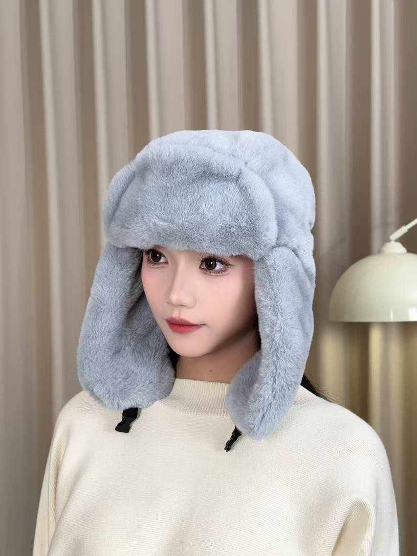 겨울 여성 모자 레이 펑 모자 패션 야외 승마 따뜻한 모자 모조 토끼 머리 방풍 차가운 귀 목 보호 모자