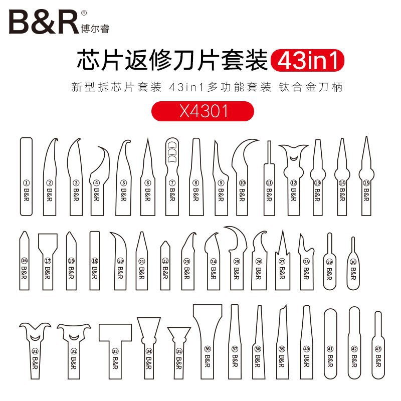 Bolui 코어 조각 재 작업 블레이드 세트 43 in1 CPU 칩 제거 세트 티타늄 합금 핸들 프라이 나이프