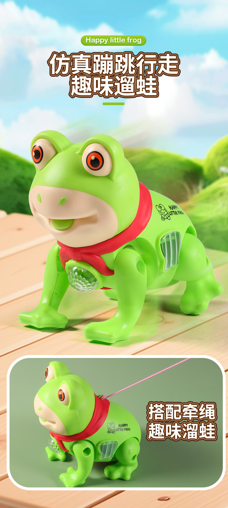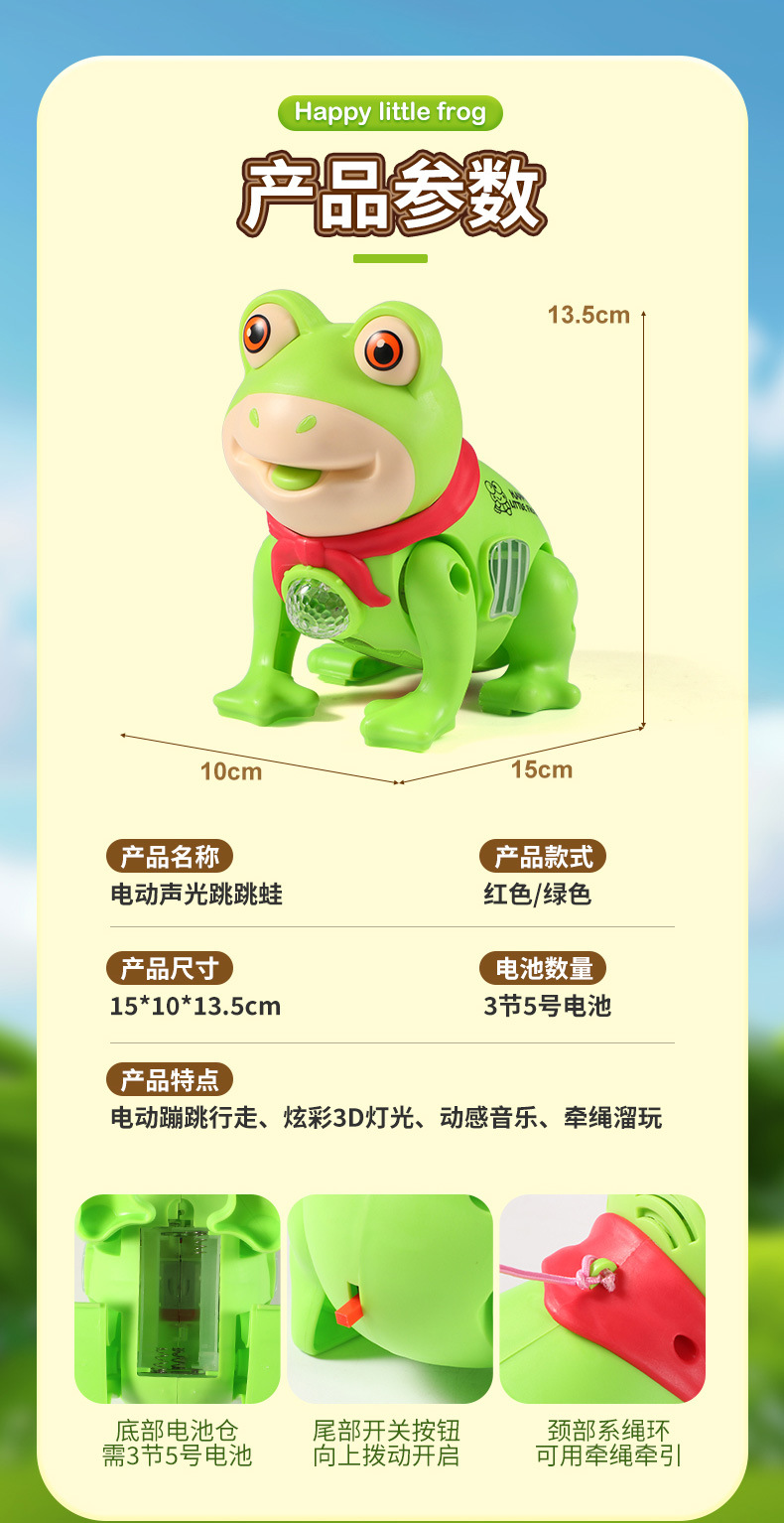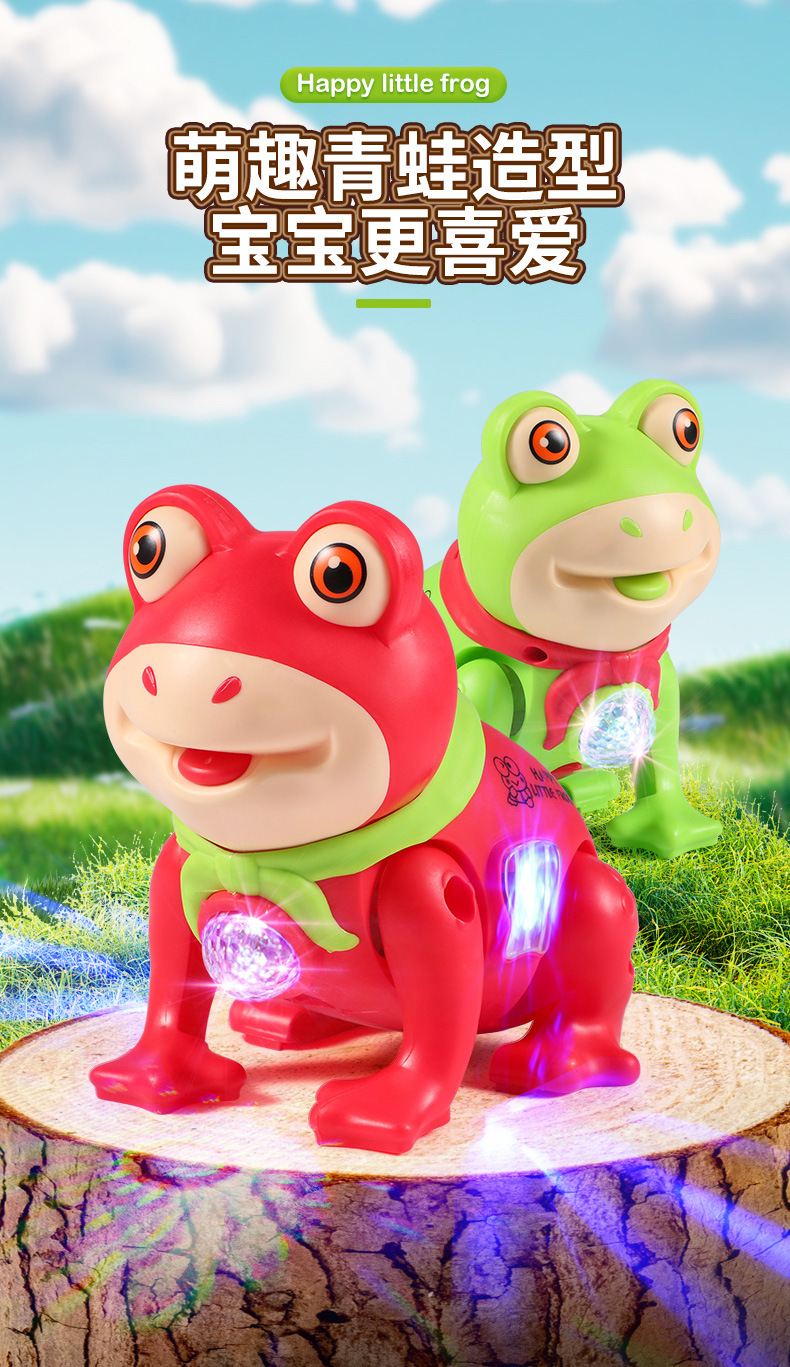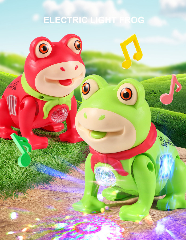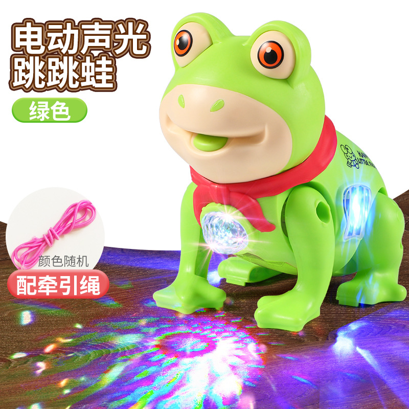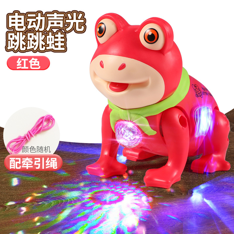 같은 단락 로프 개구리 음악의 소리를 흔들어 걷는 소년과 소녀 그물 붉은 빛나는 전기 동물 장난감을 노래합니다.스토어 가기