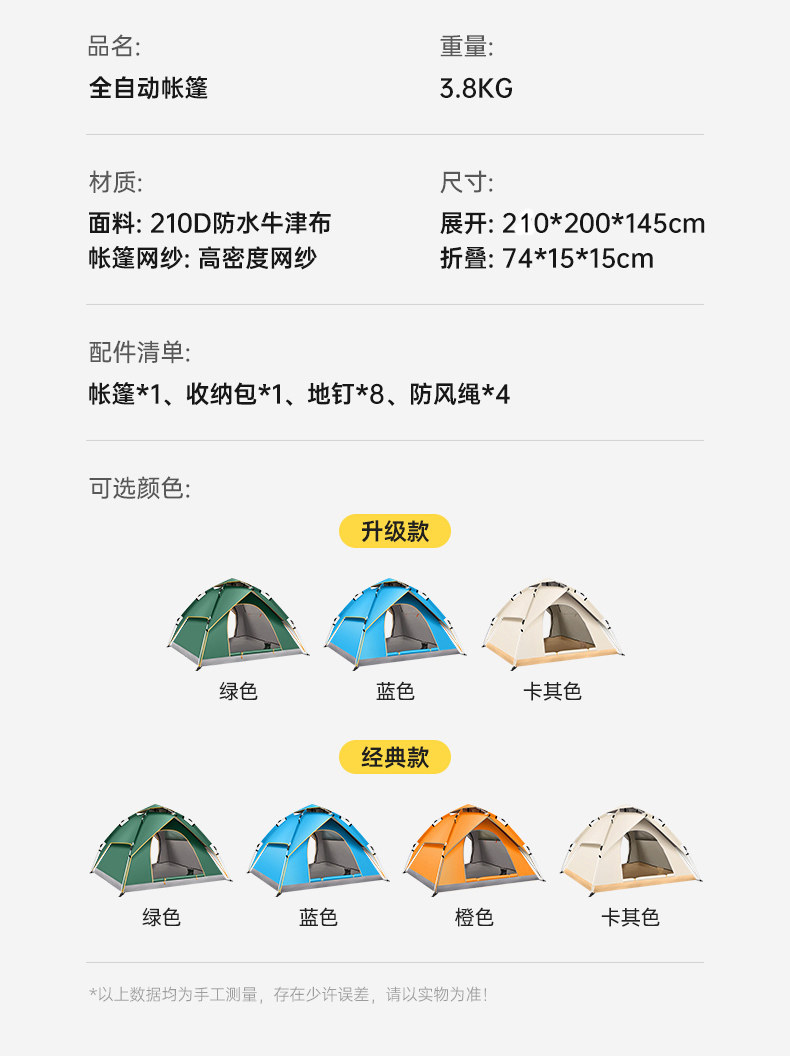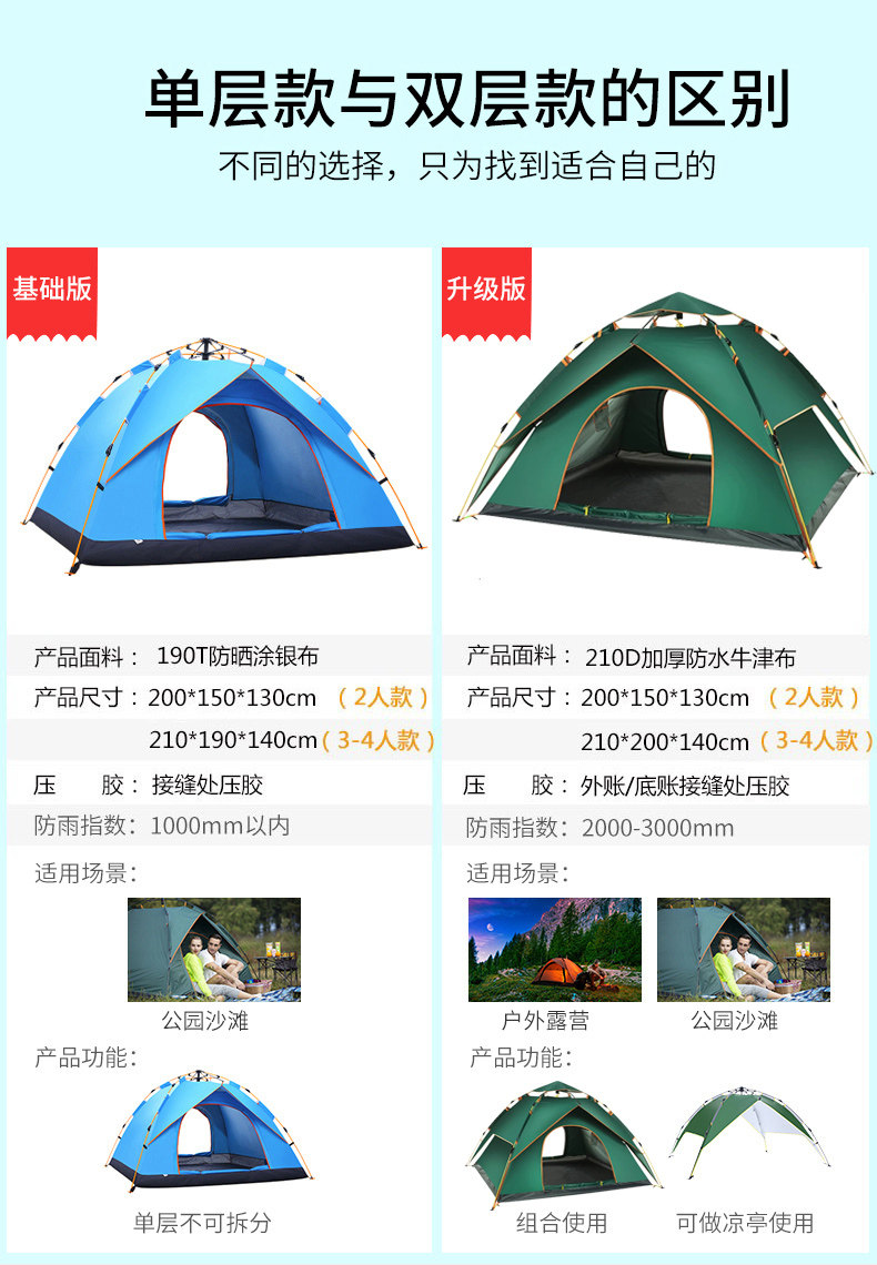 북극 늑대 텐트 야외 캠핑 하룻밤 휴대용 접히는 자동 캠핑 두꺼운 야외 방비 태양 빠른 열기스토어 가기