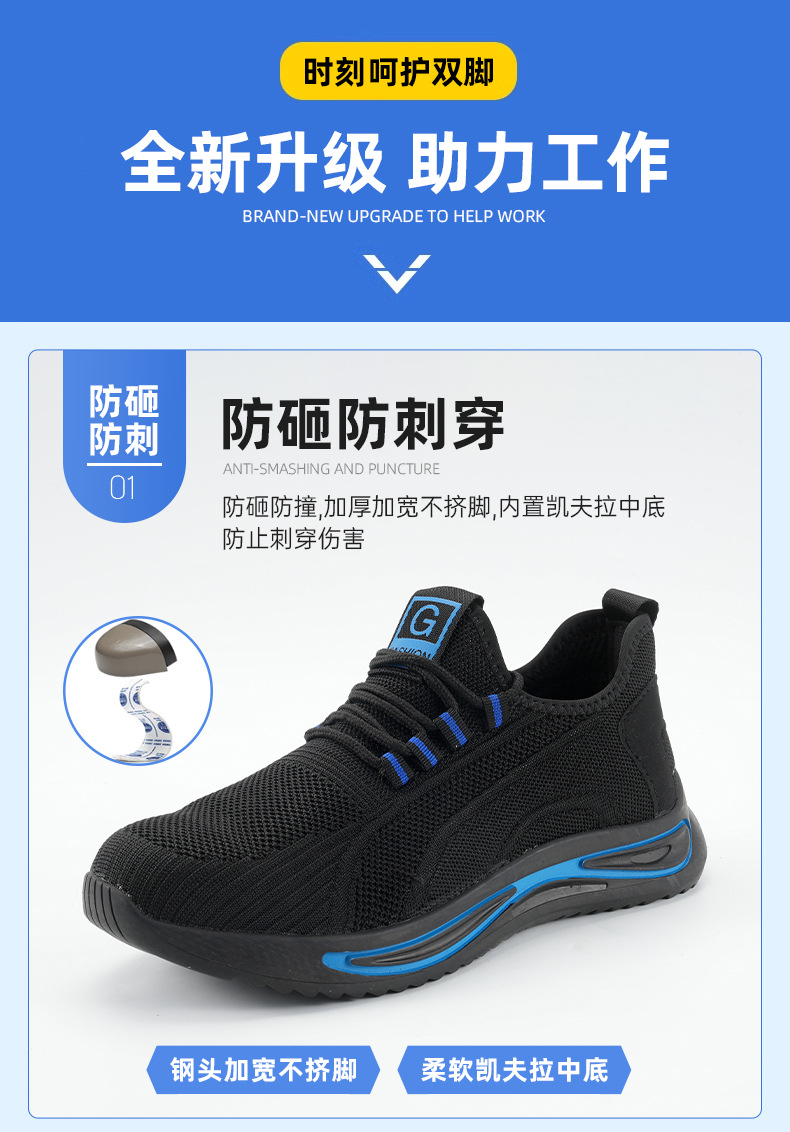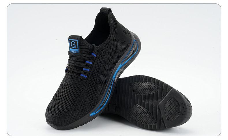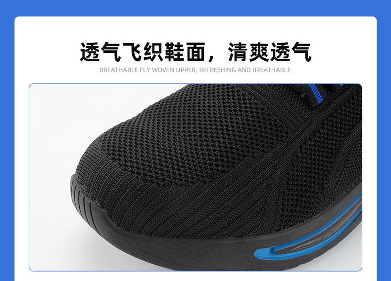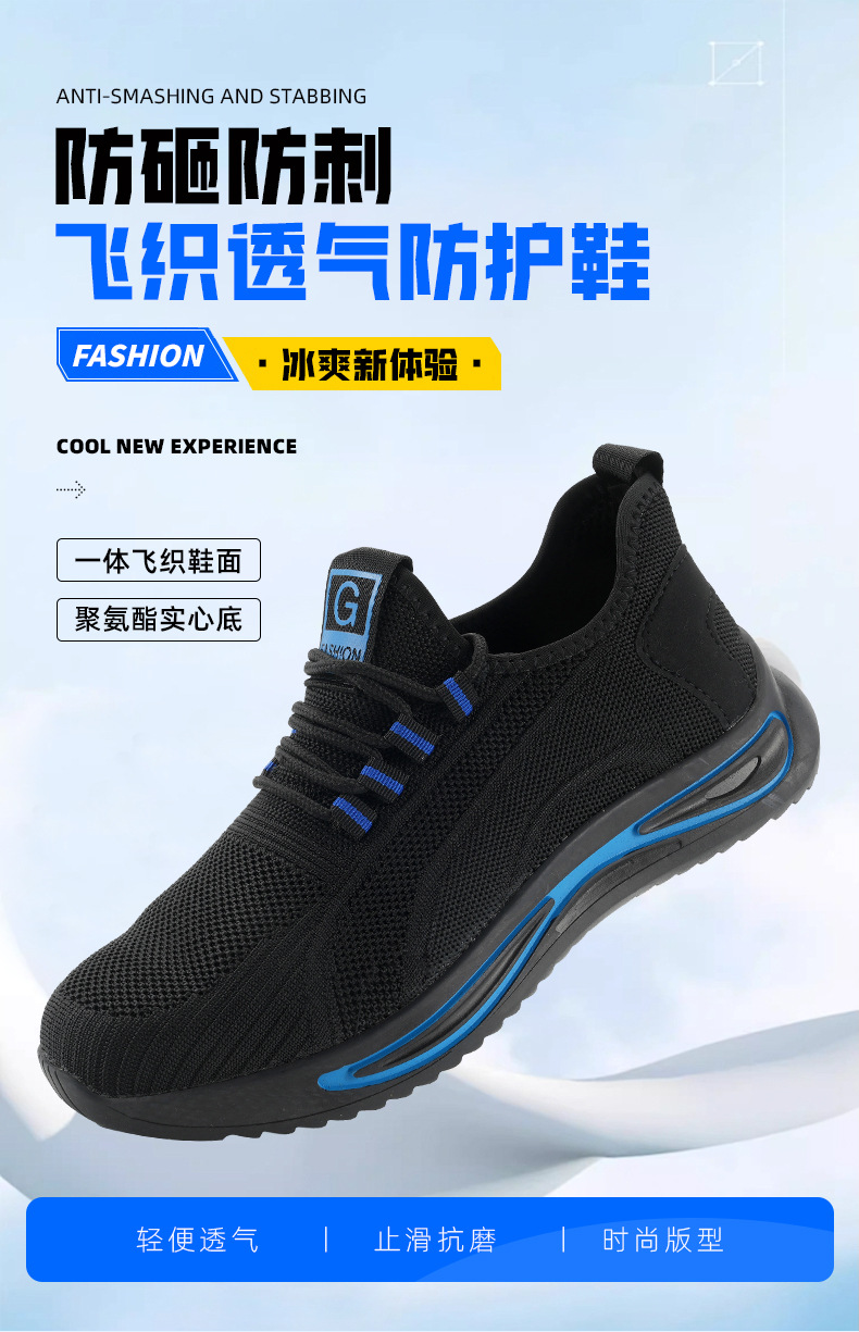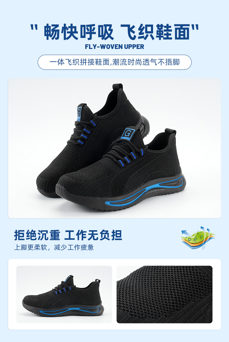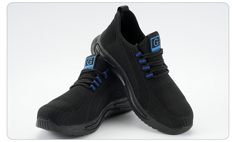 충격 방지 및 펑크 방지 안전 보호 작업화, 여름용 통기성 플라이 니트 메쉬 블랙 남성용 작업화, 로우컷 스타일스토어 가기