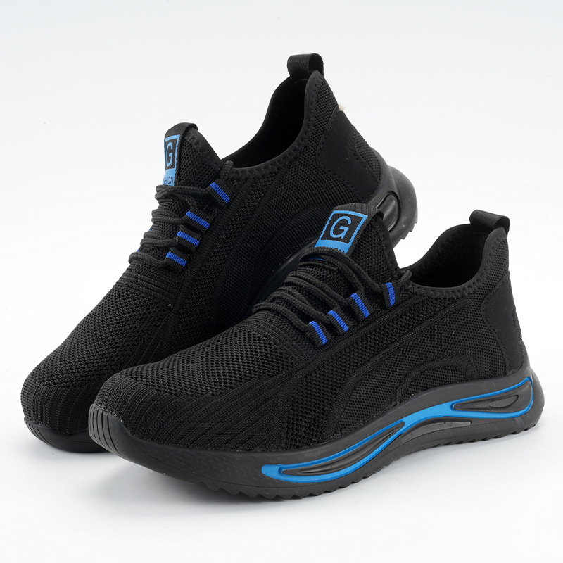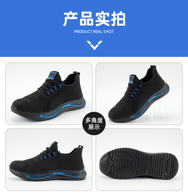 충격 방지 및 펑크 방지 안전 보호 작업화, 여름용 통기성 플라이 니트 메쉬 블랙 남성용 작업화, 로우컷 스타일