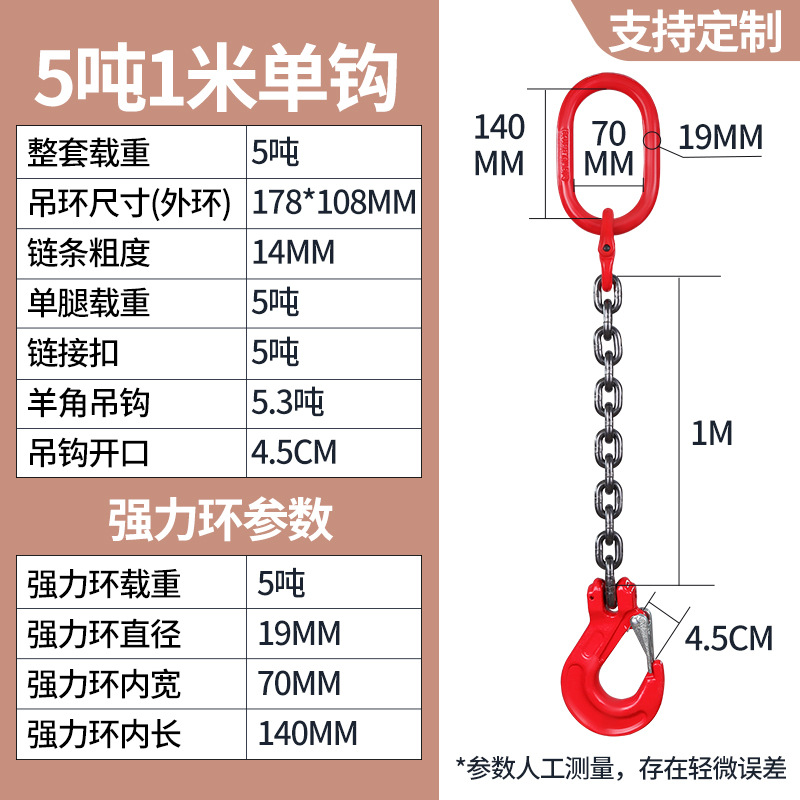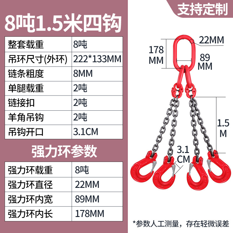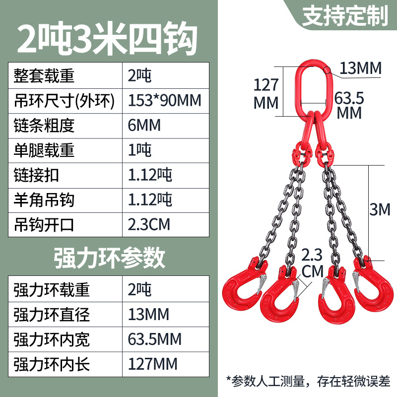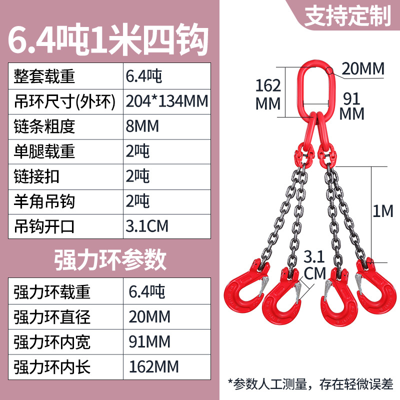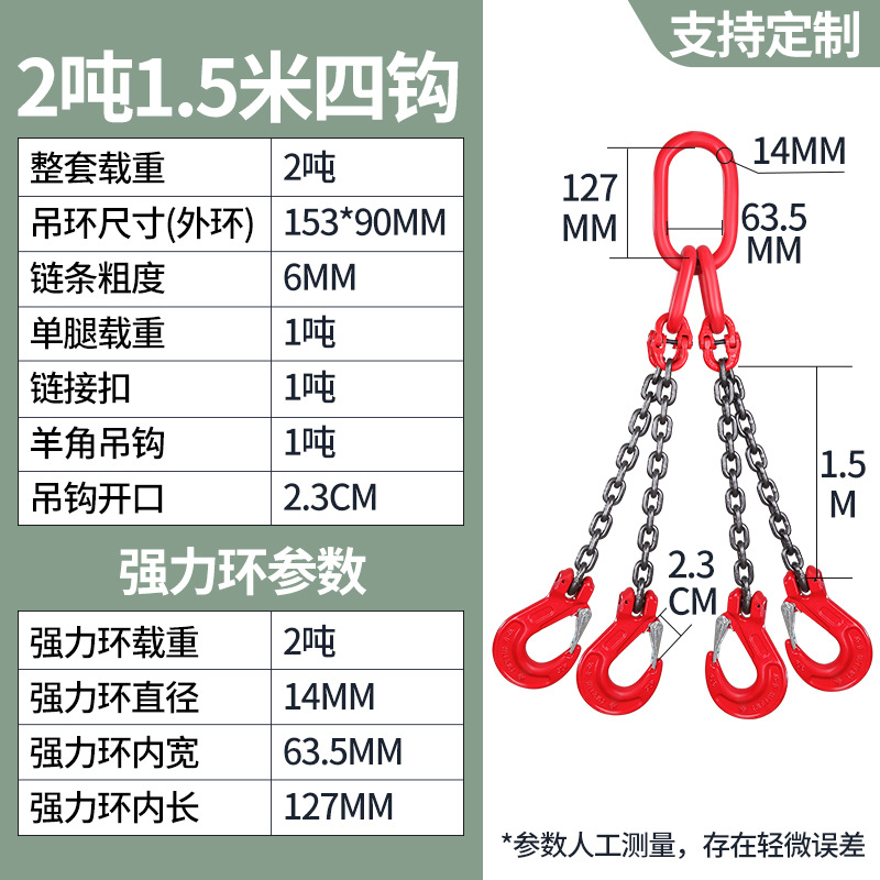 매달린 체인 리프팅 슬링 2/5 톤 3 4 발톱 망간 스틸 체인 슬링 리프팅 후크 철 체인 리프팅 링 후크스토어 가기
