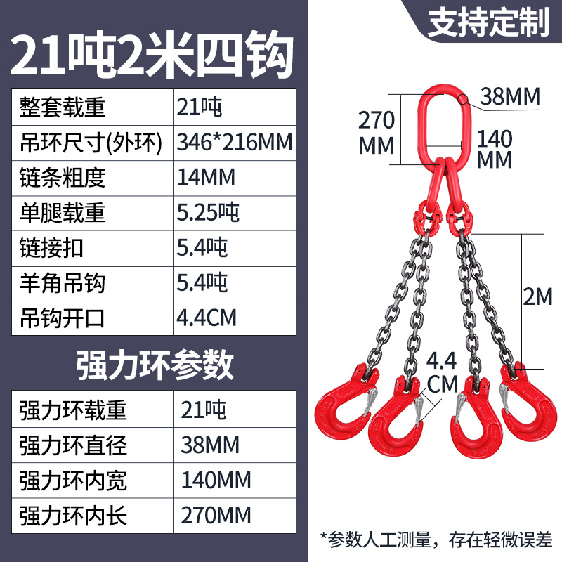 매달린 체인 리프팅 슬링 2/5 톤 3 4 발톱 망간 스틸 체인 슬링 리프팅 후크 철 체인 리프팅 링 후크