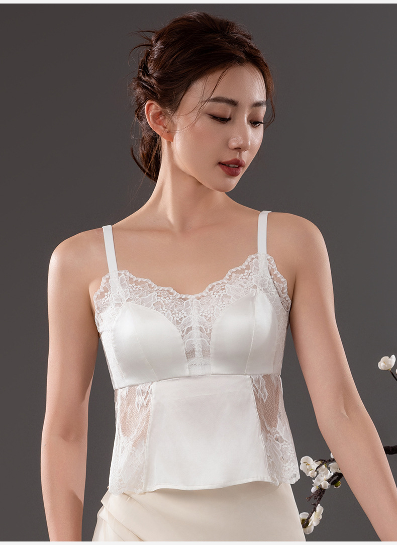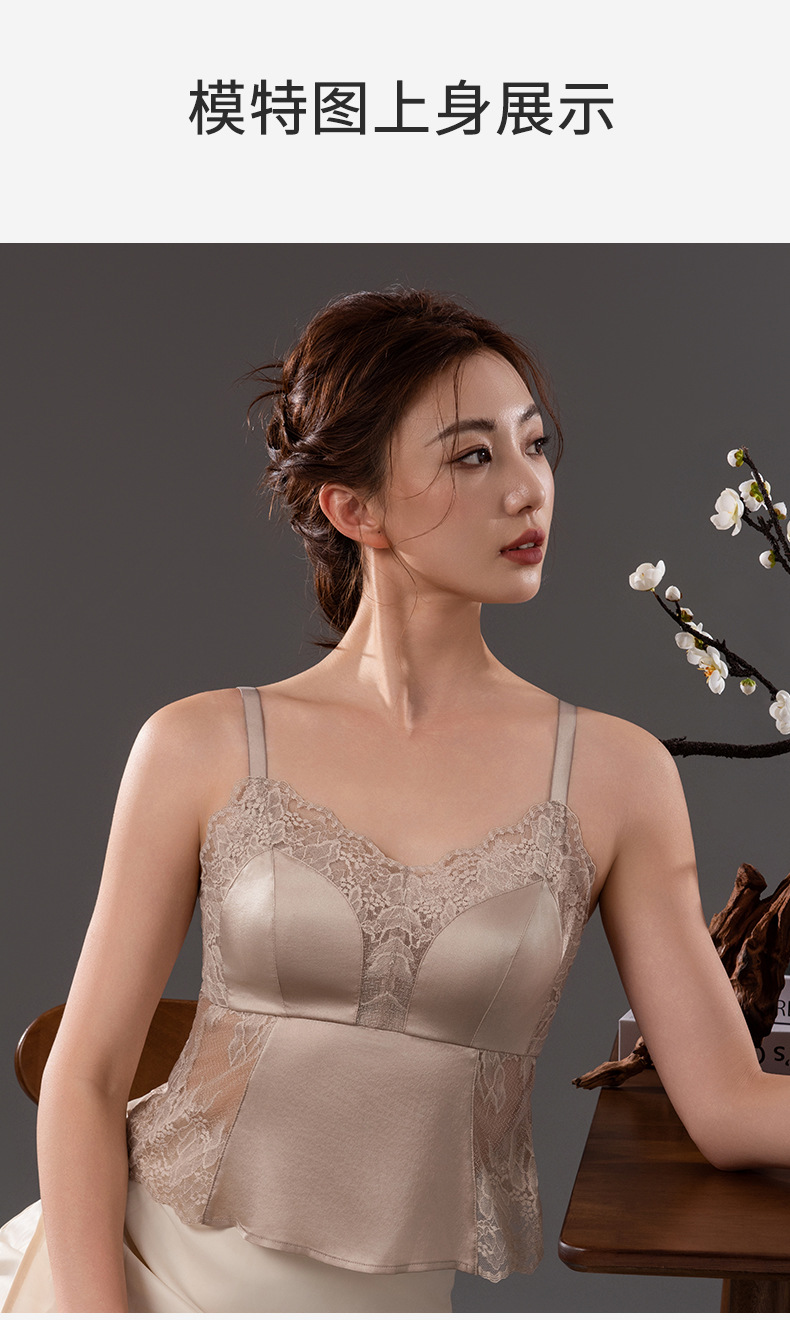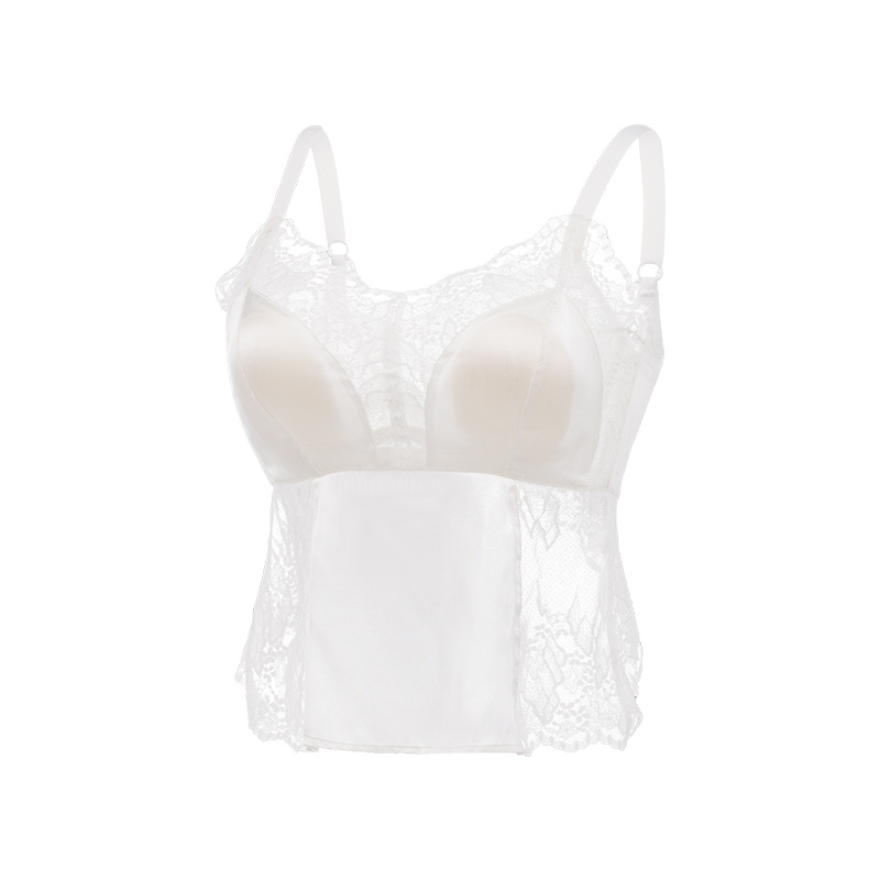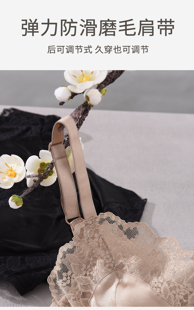 Tangge 새틴 실크 큰 가슴 작은 아름다운 뒤 뽕나무 실크 섹시한 레이스 얇은 브래지어 원피스 슬링
