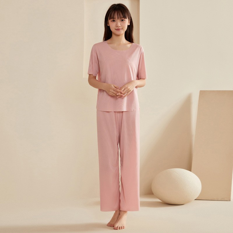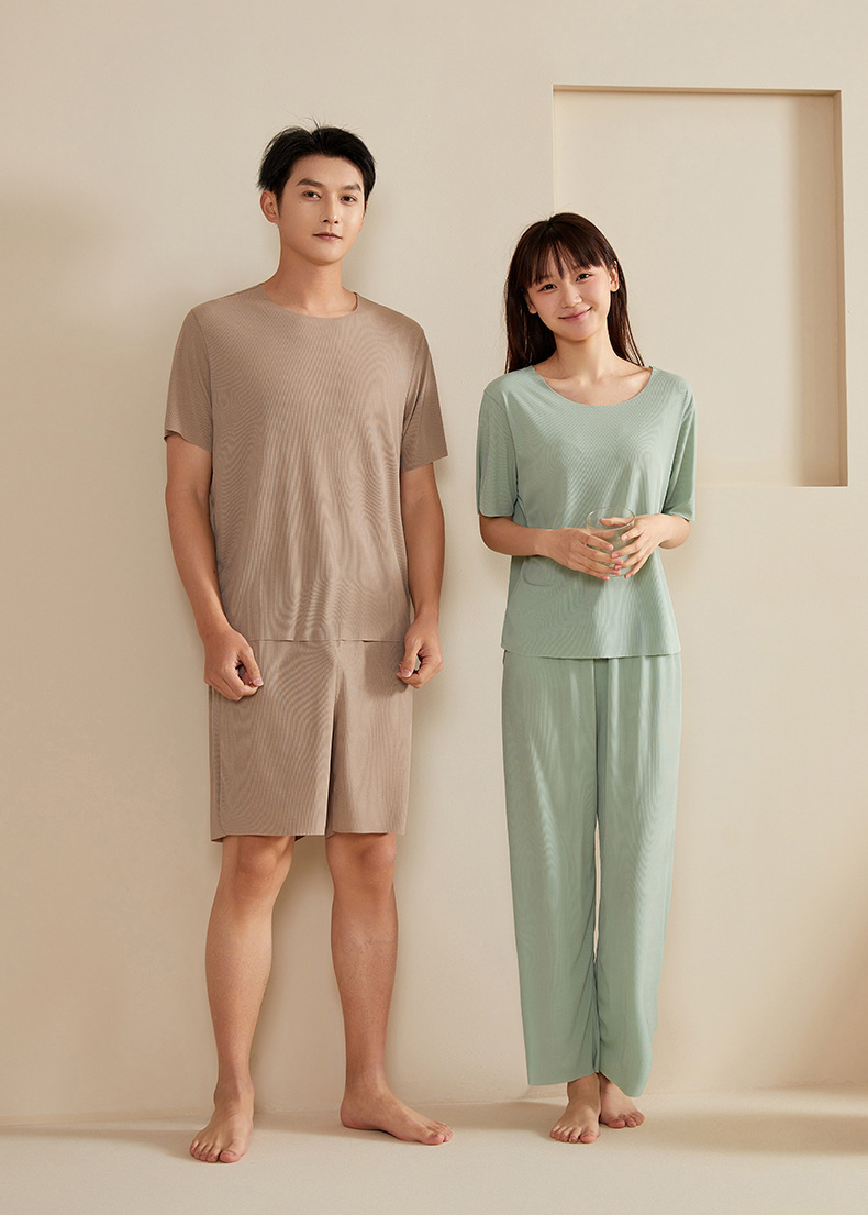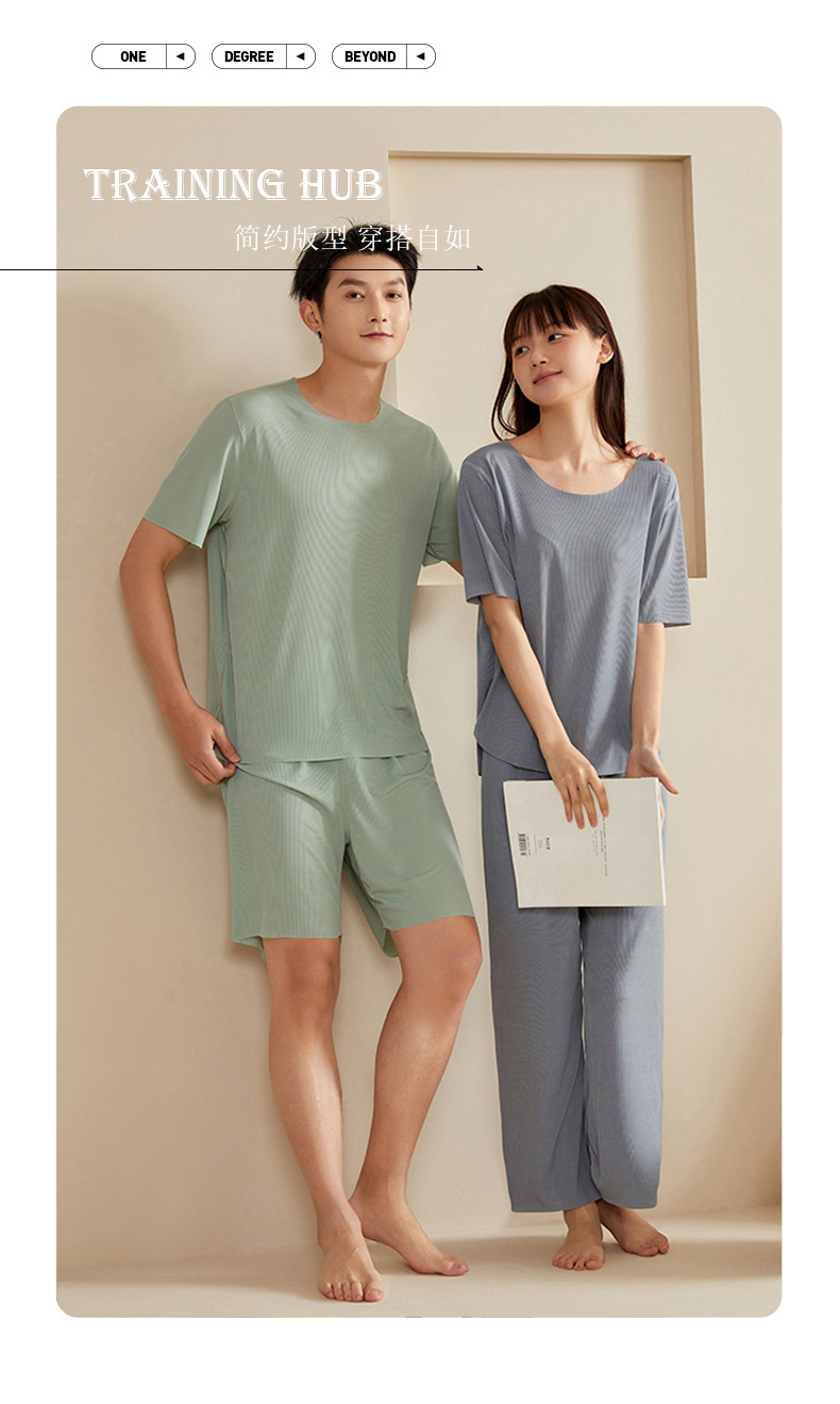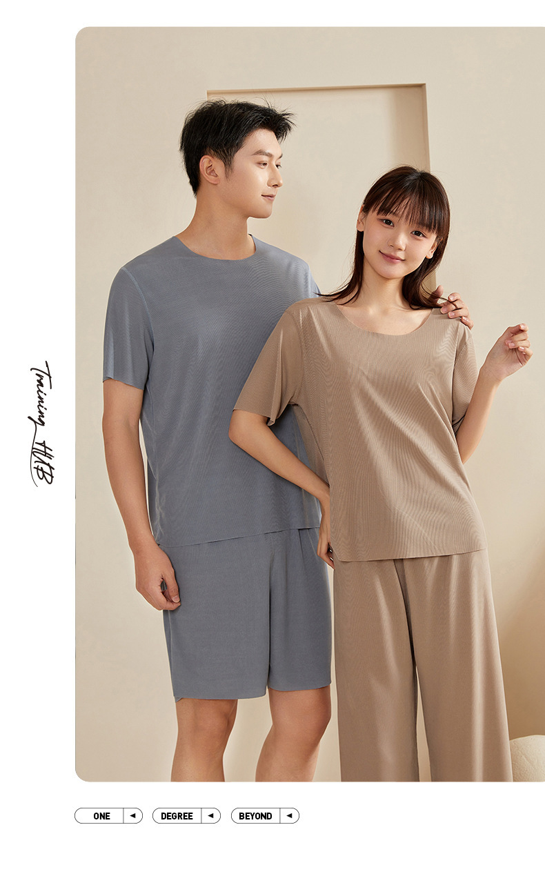 아이스 실크 커플 잠옷 세트 여성 여름 2024 여름 느슨한 플러스 사이즈 홈 옷 남성 잠옷 재고 도매스토어 가기