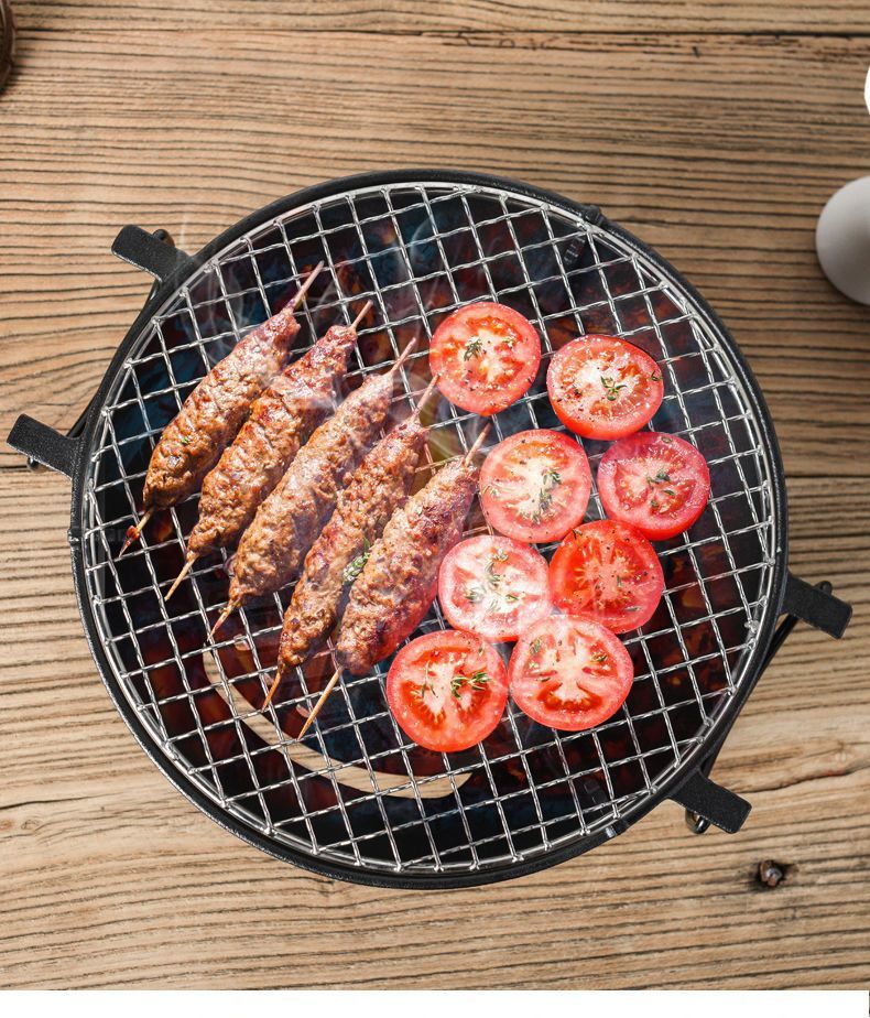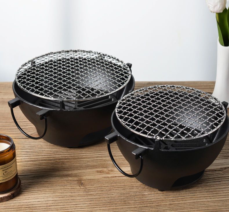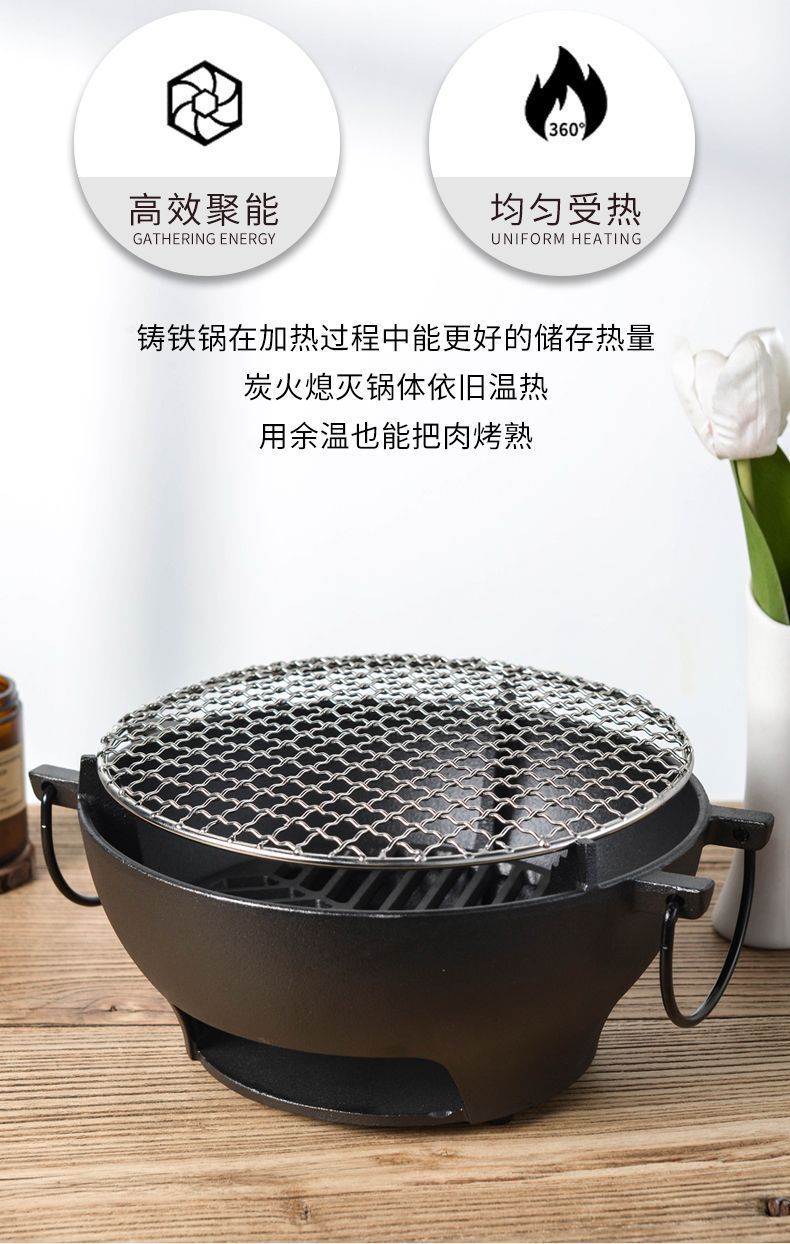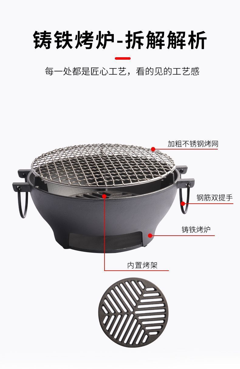 주철 바베큐 오븐 바베큐 가정용 요리 차 라운드 바베큐 숯 야외 다기능 오븐 유니버설 휴대용스토어 가기