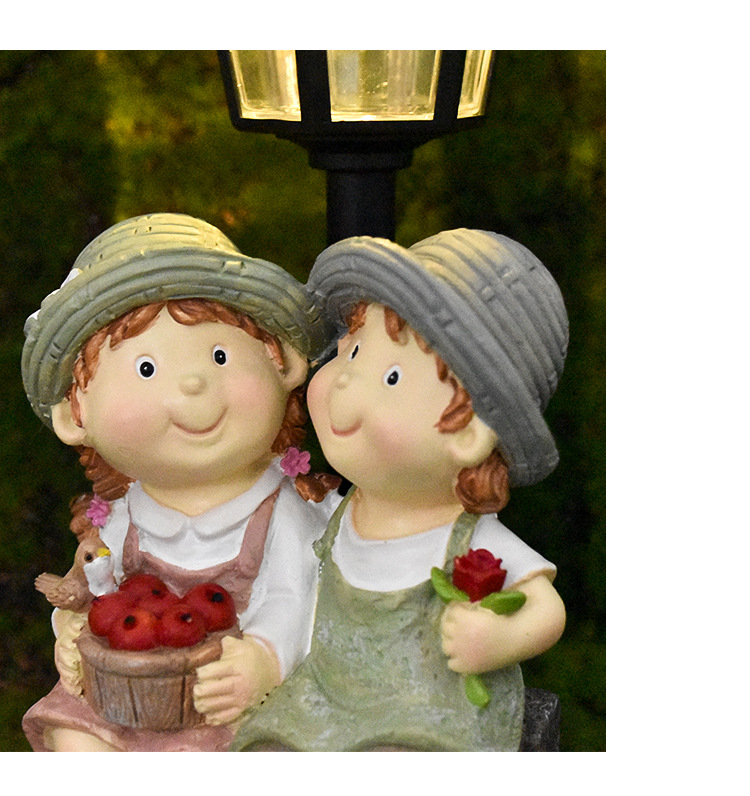 북유럽 작은 천사 소녀 수지 장식 태양 육각형 램프 아기 동상 야외 정원 발코니 장식