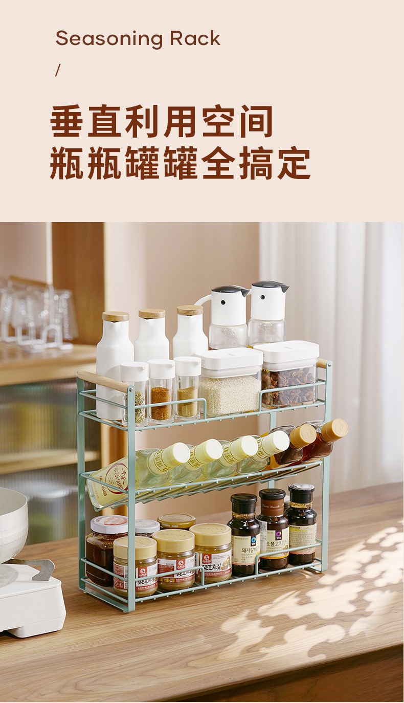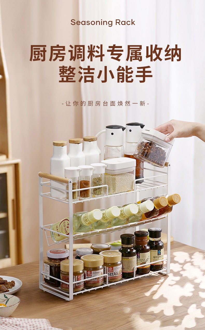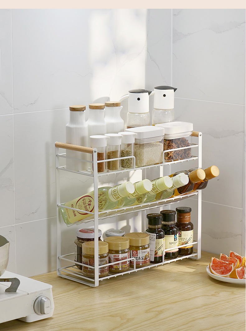 일본식 주방 보관 랙 다기능 가정용 테이블 탑 다층 조미료 소금 소스 및 식초 저장 랙 조미료 선반