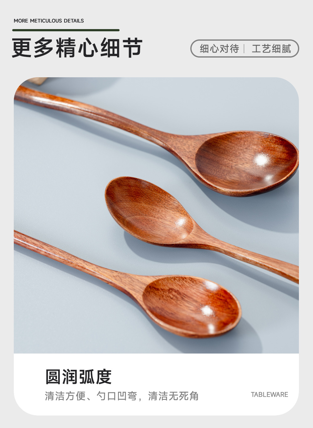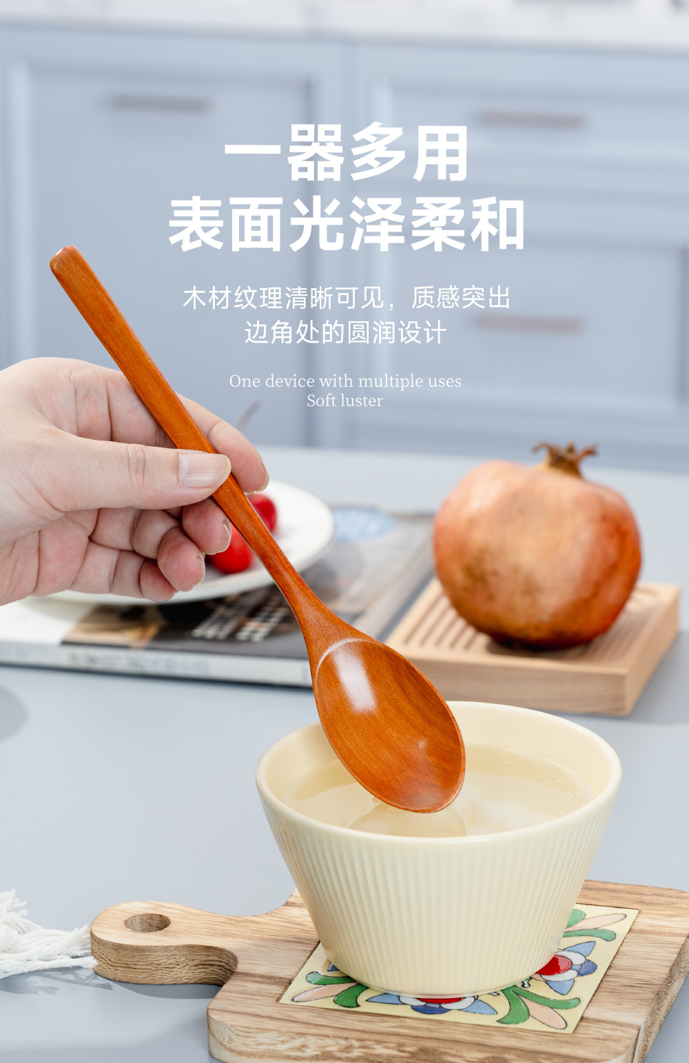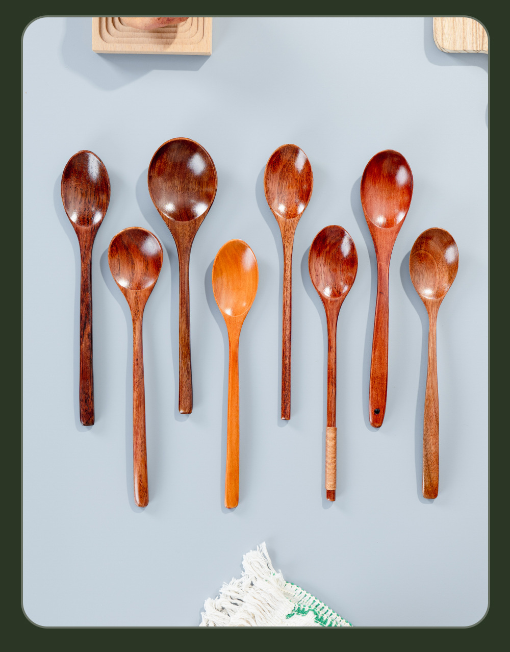 일본과 한국식 긴 손잡이 나무 숟가락 그물 붉은 혼합 숟가락 마른 쌀 숟가락 큰 김치 숟가락 나무 식기 도매스토어 가기