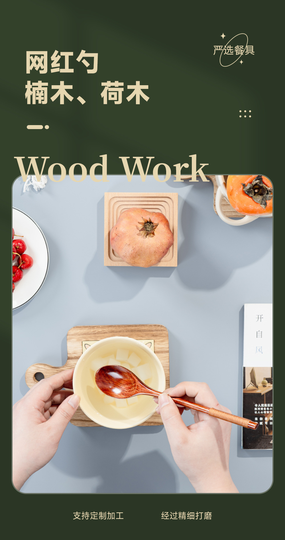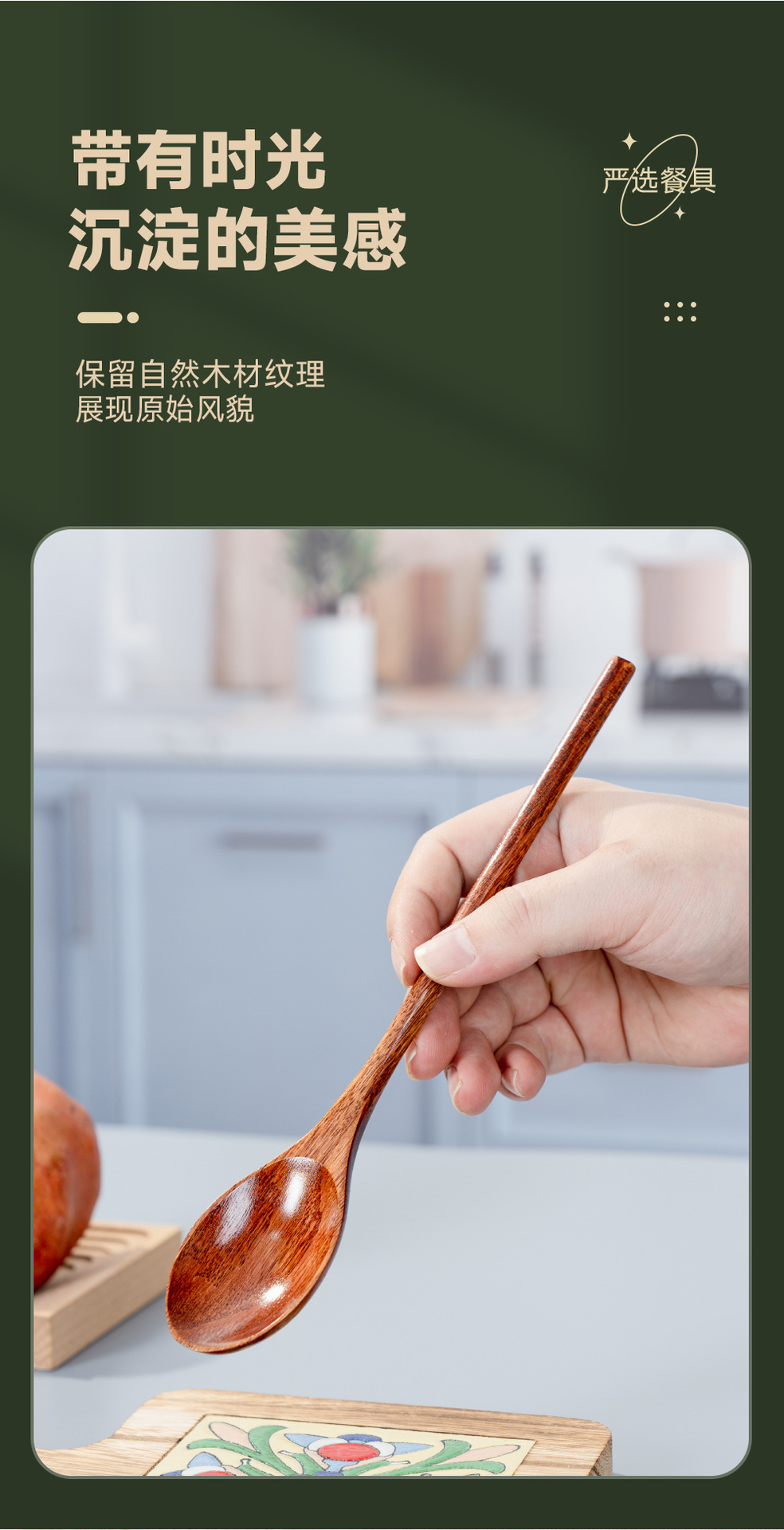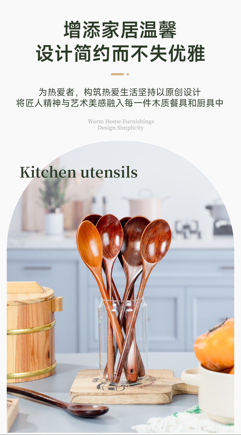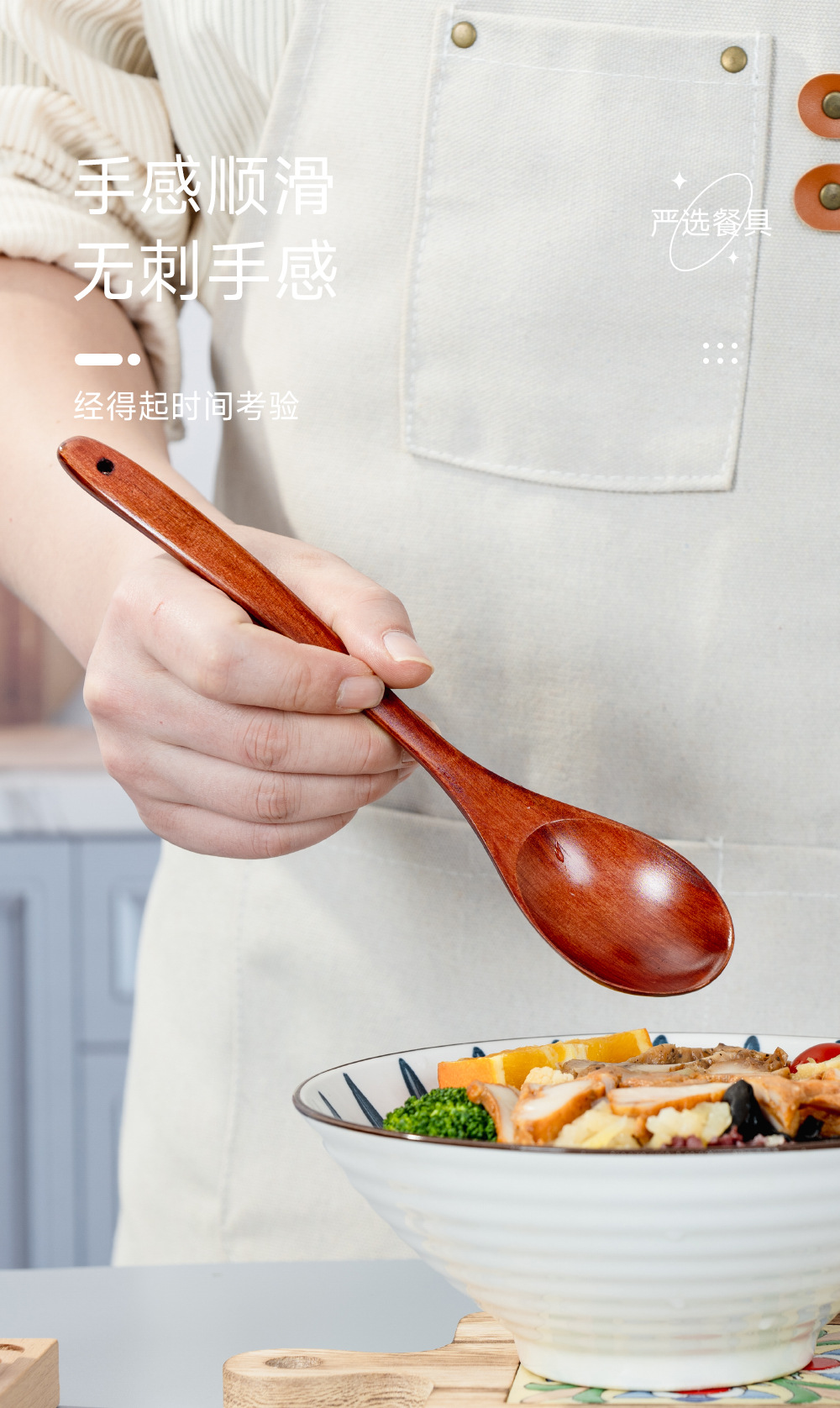 일본과 한국식 긴 손잡이 나무 숟가락 그물 붉은 혼합 숟가락 마른 쌀 숟가락 큰 김치 숟가락 나무 식기 도매스토어 가기