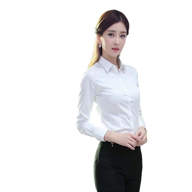 흰색 셔츠 여성용 긴 소매 봄 및 가을 새로운 한국식 슬림핏 슬리밍 비즈니스 착용 작업복 원피스 여성용 플러스 사이즈 기본 셔츠스토어 가기