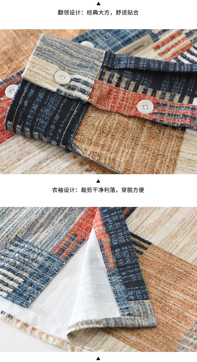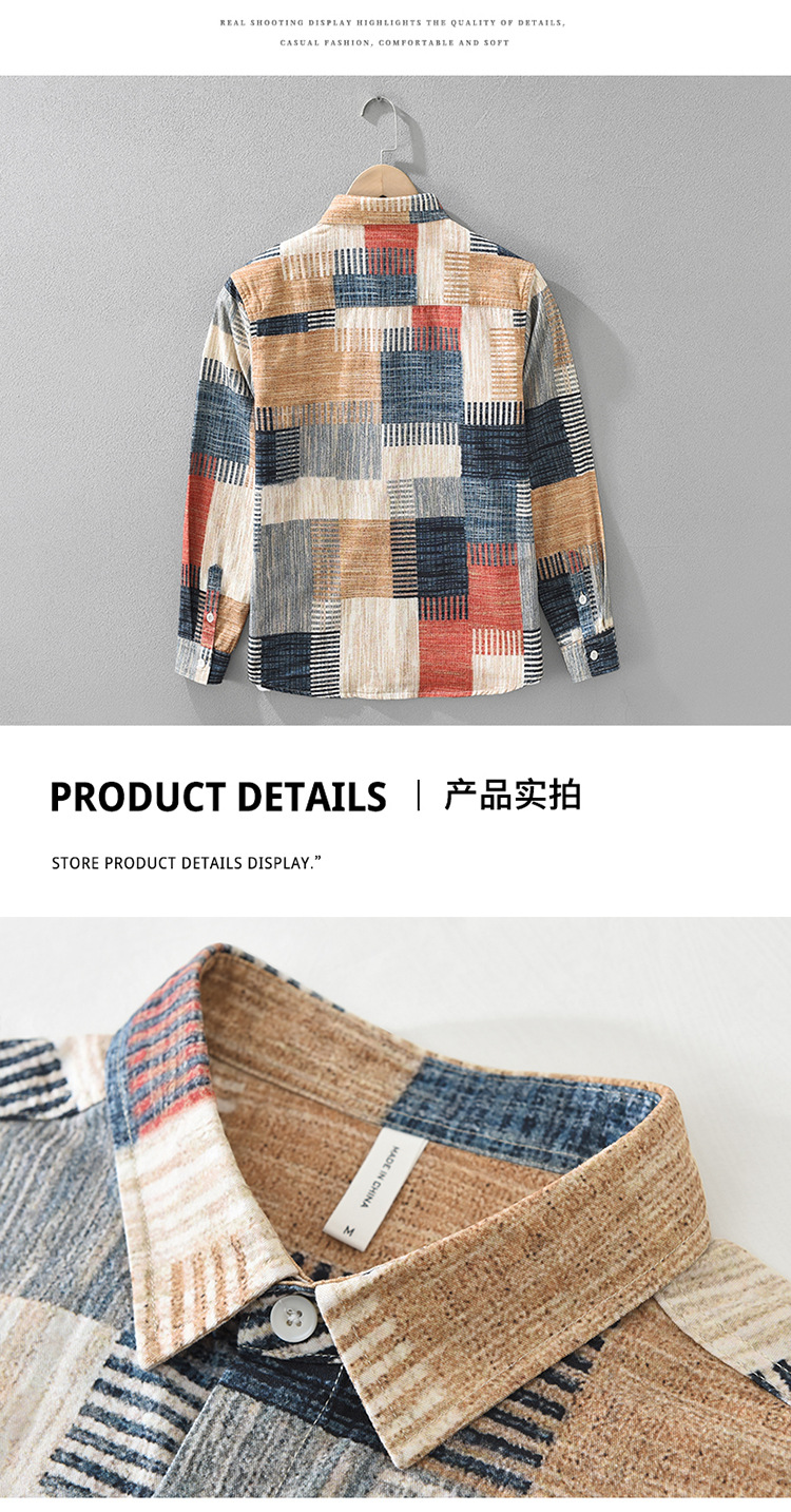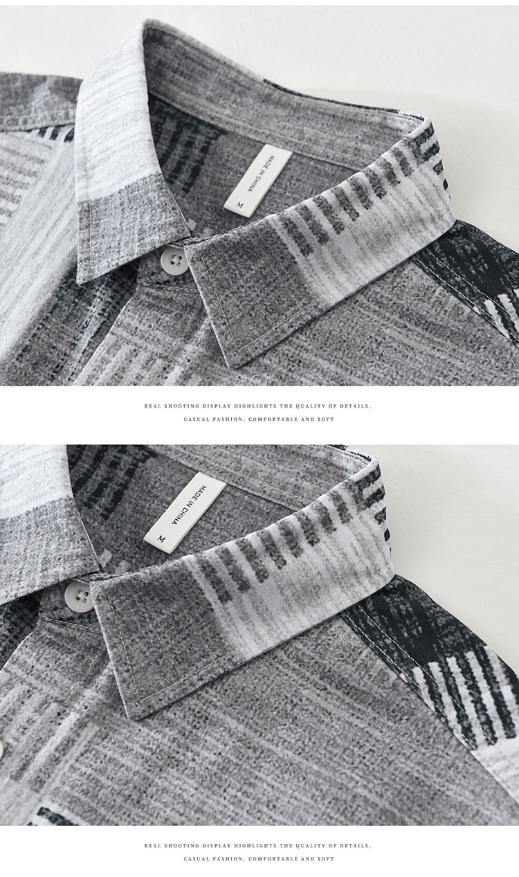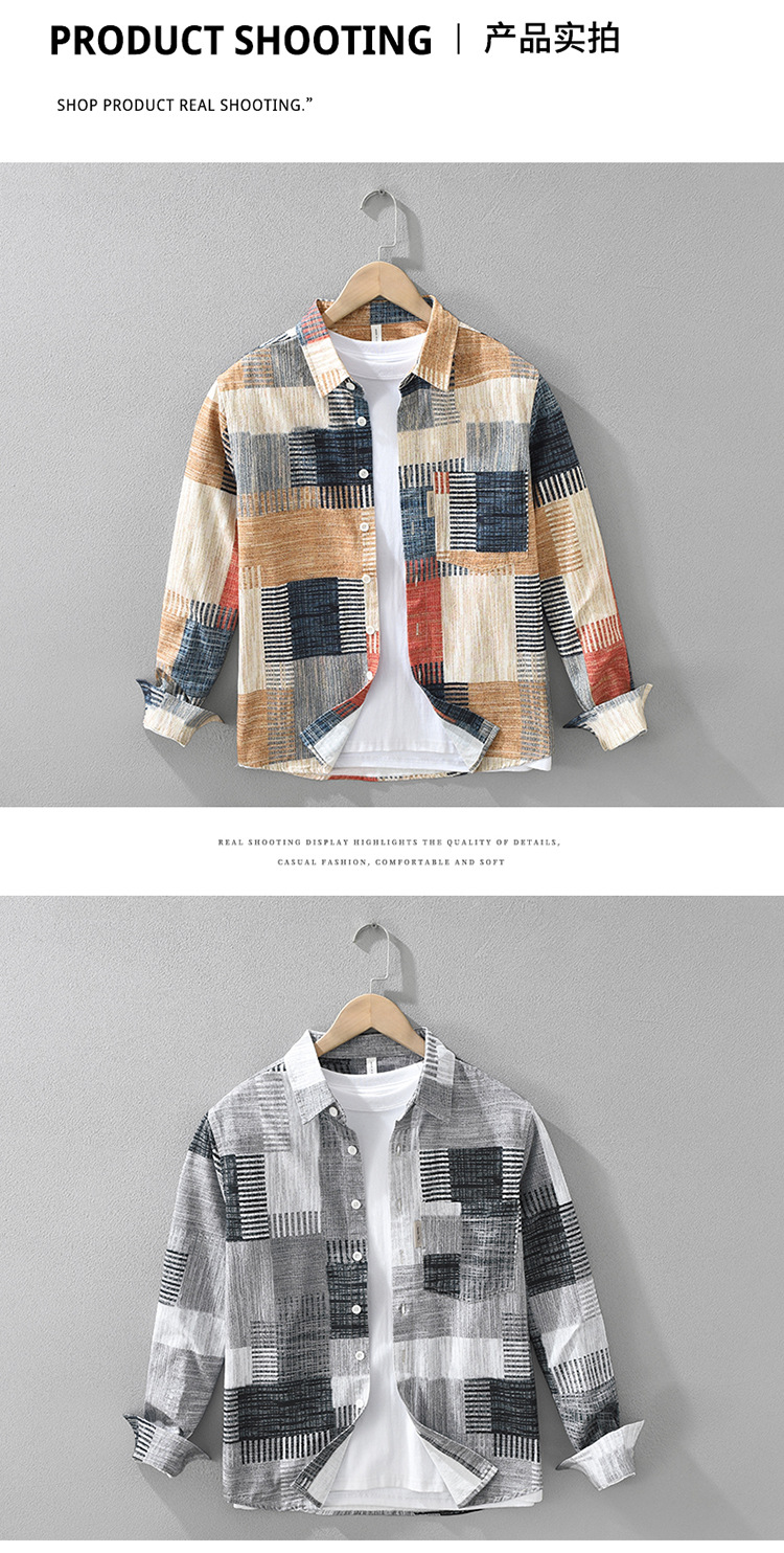 7592 일본 패션 인쇄 긴 소매 셔츠 남성 트렌드 문학 레저 느슨한 최고 남자의 머리