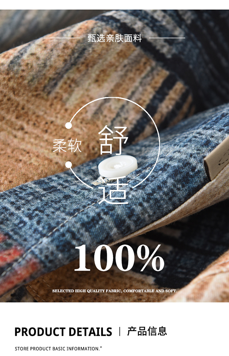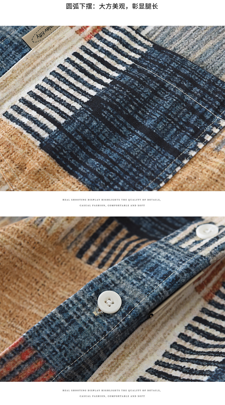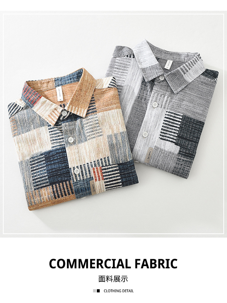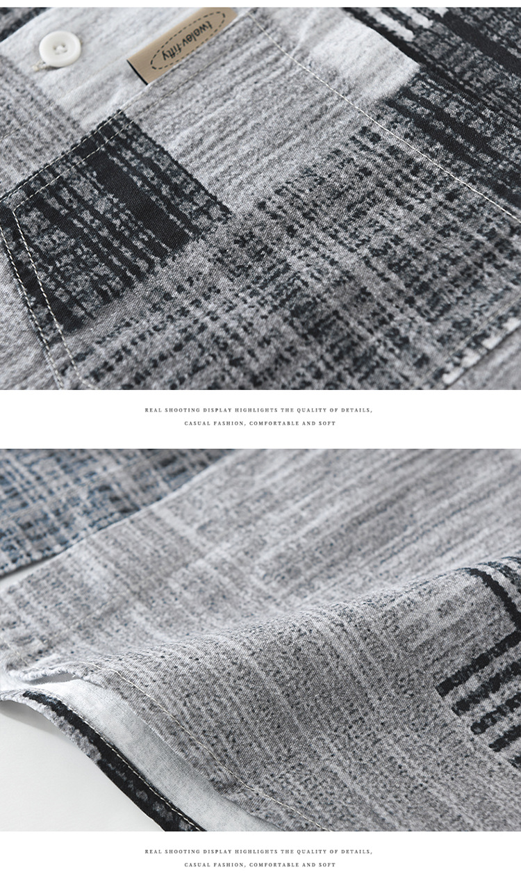 7592 일본 패션 인쇄 긴 소매 셔츠 남성 트렌드 문학 레저 느슨한 최고 남자의 머리