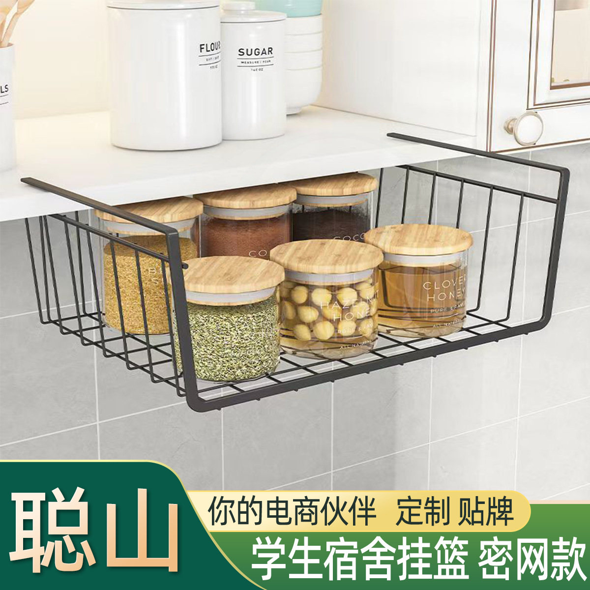 주방 걸이 바구니, 캐비닛 아래 수납 선반, 학생 책상 아래 바구니 수납, 노트북, 책, 학습 수납스토어 가기