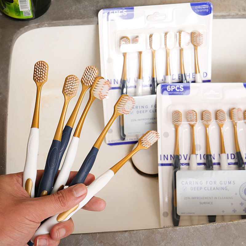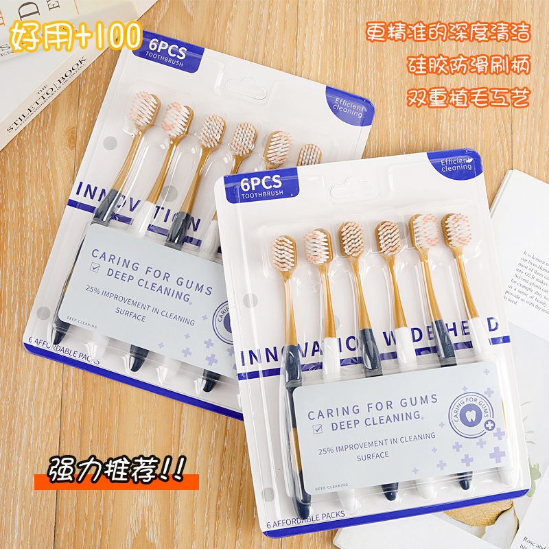 Shan Mu 슈퍼마켓 같은 칫솔 고급 소프트 헤어 칫솔 성인 가구 6 팩 와이드 헤드 껌 보호 커플 칫솔스토어 가기