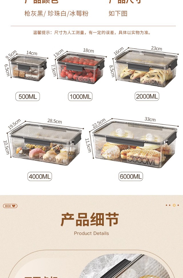 뚜껑이 있는 신선도 유지 상자 식품 등급 냉동 과일 도시락 식품 주방 휴대용 가정용 밀봉 상자 냉장고 보관 상자