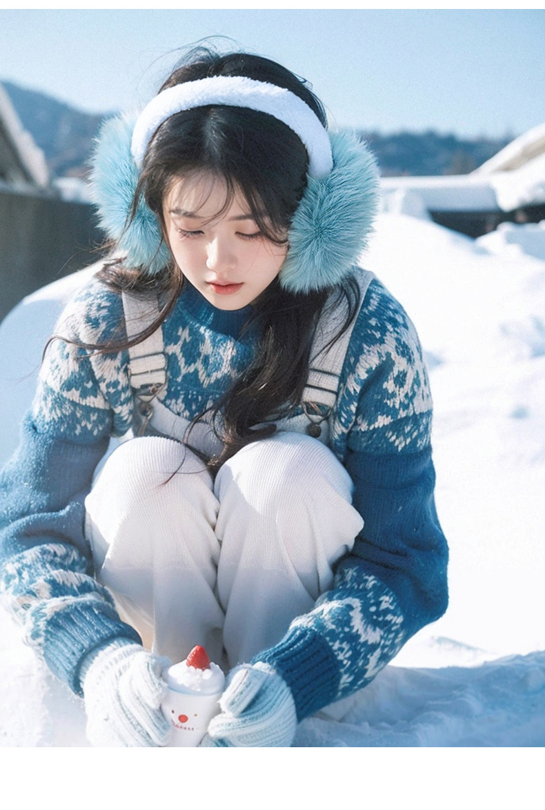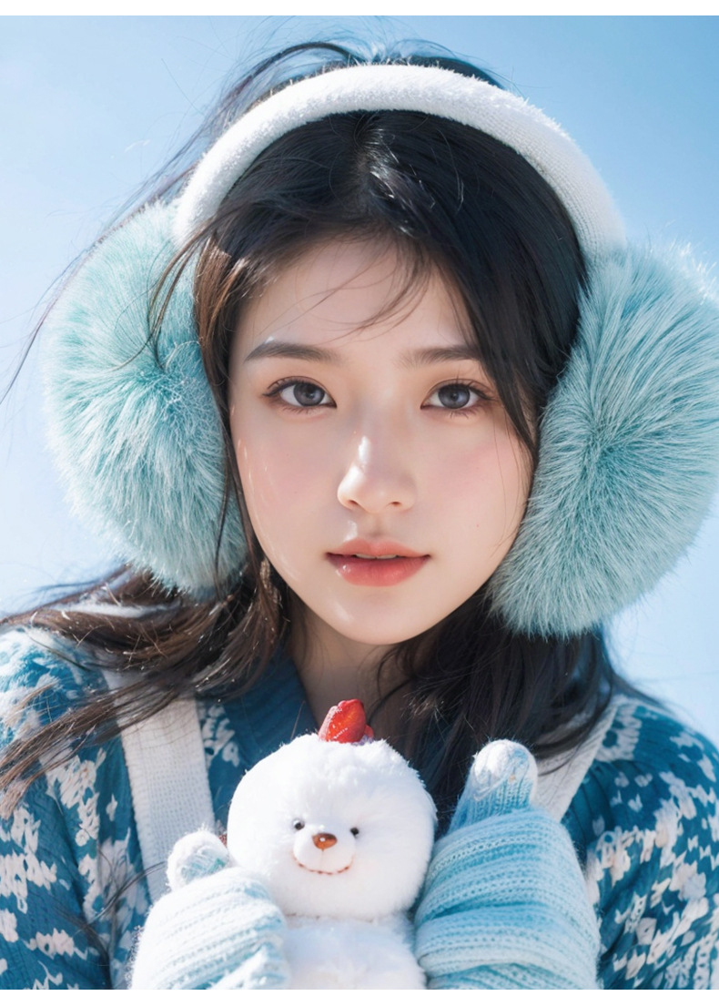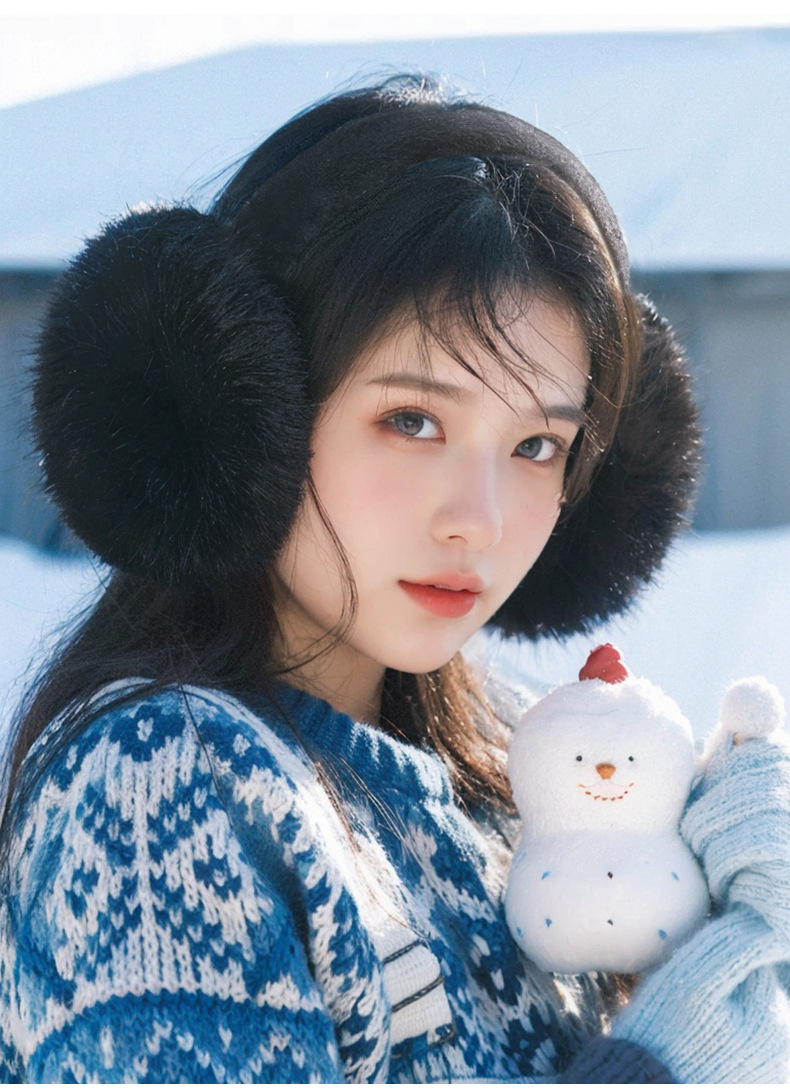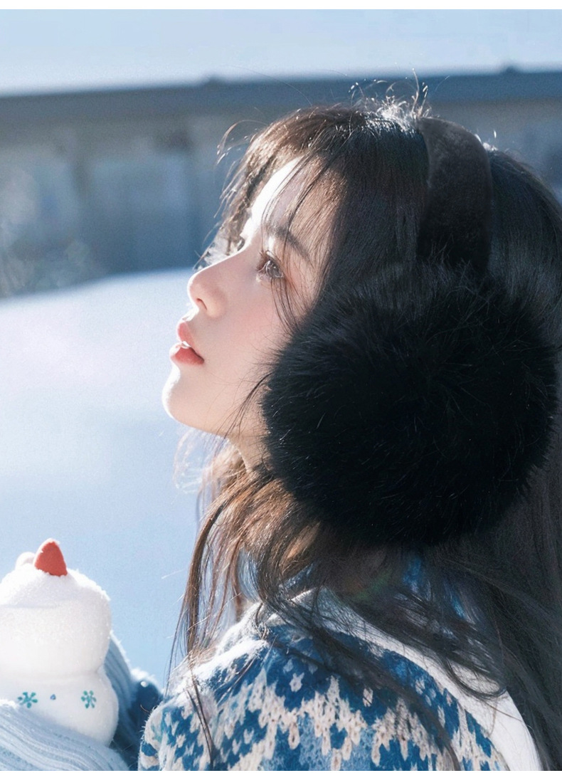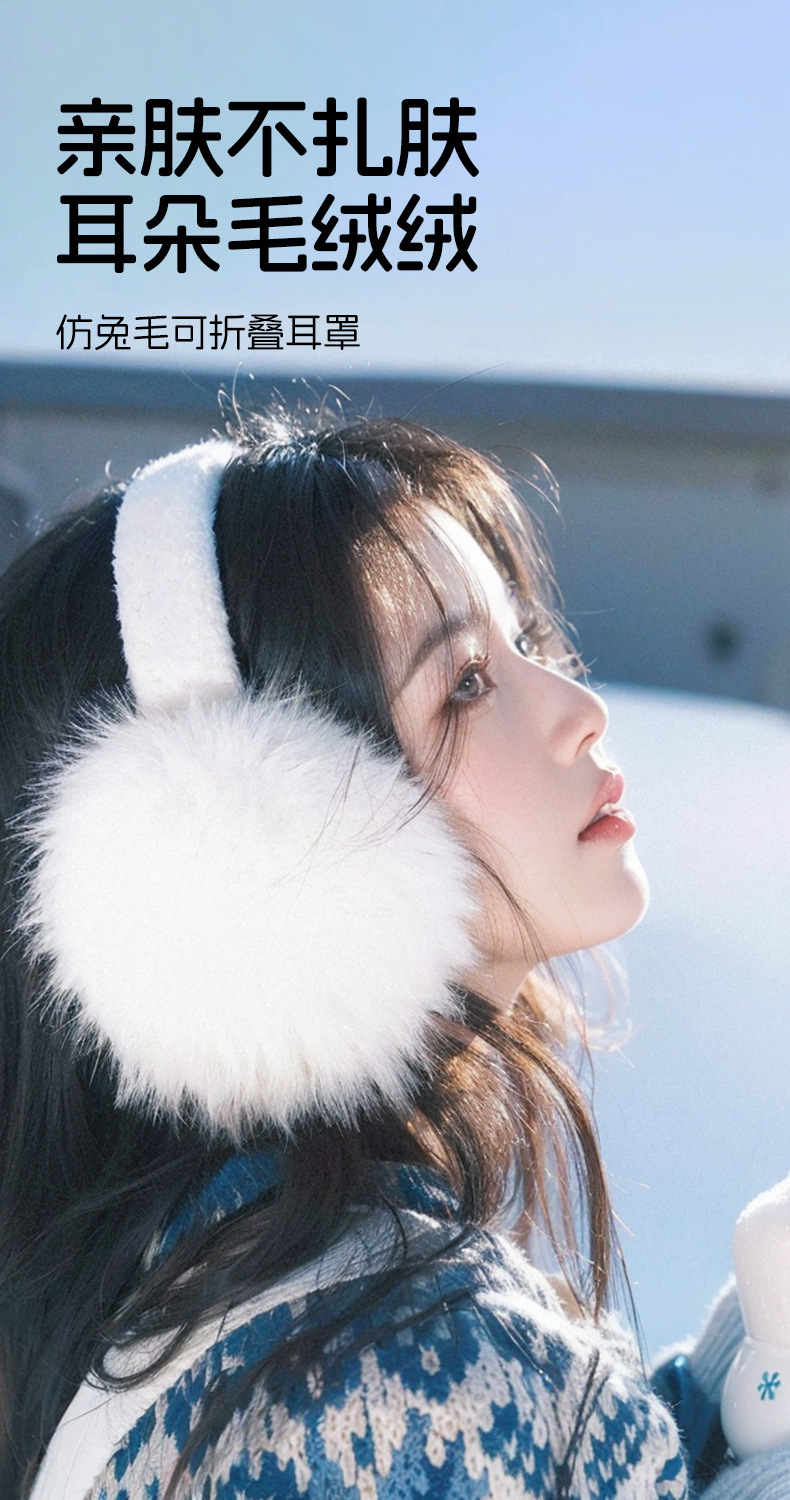 여성용 가을 겨울용 모조 토끼털 보온 귀마개, 두꺼운 귀덮개, 사이클링용 방풍 방한 접이식 귀보호대