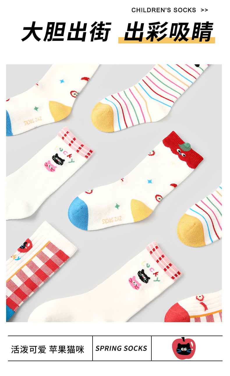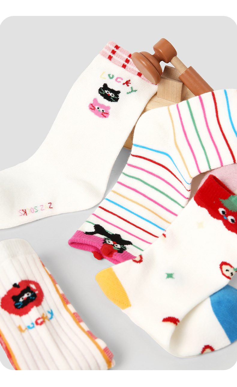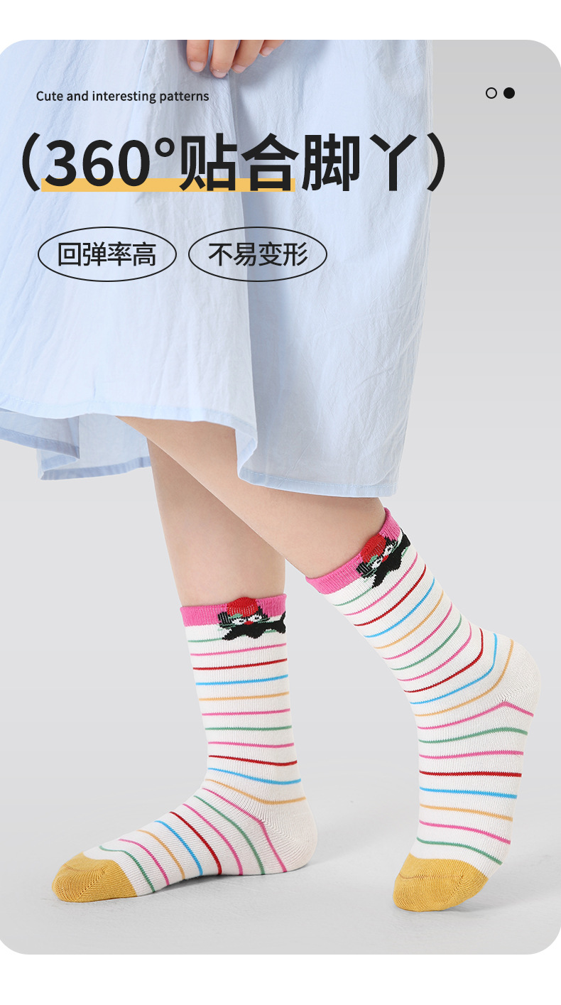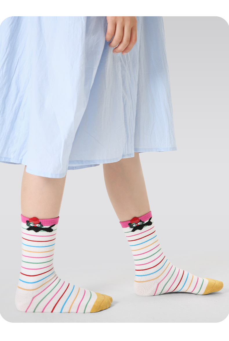 1798 년 어린이 양말 도매 봄 새로운 무지개 줄무늬 튜브 양말 뼈없는 귀여운 고양이 소녀 양말면스토어 가기