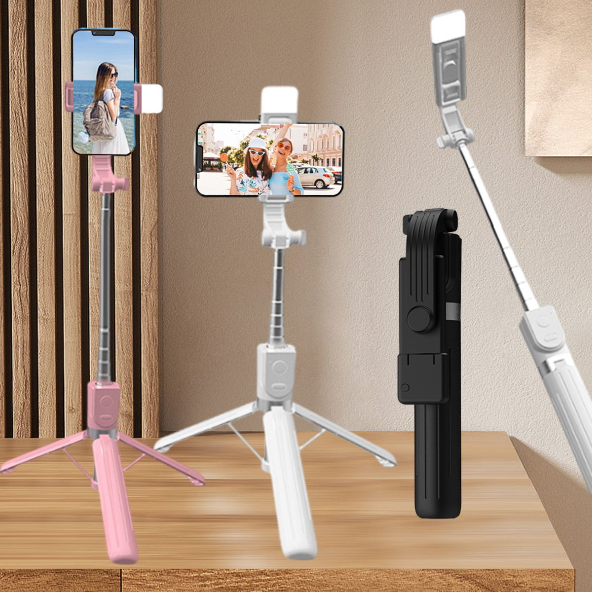 국경 간 폭발의 세대 휴대 전화 셀카 스틱 휴대 전화 라이브 조명 보충 브래킷 원격 제어 휴대용 접이식 블루투스스토어 가기