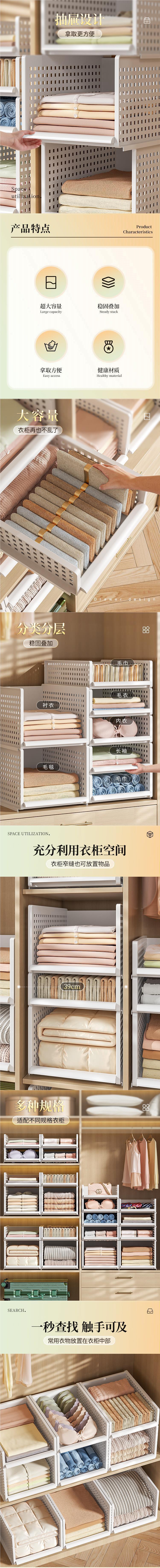 옷장 보관 계층화 된 가정용 침실 옷 서랍 유형 중공 저장 상자 두꺼운 파티션 마감 도매스토어 가기