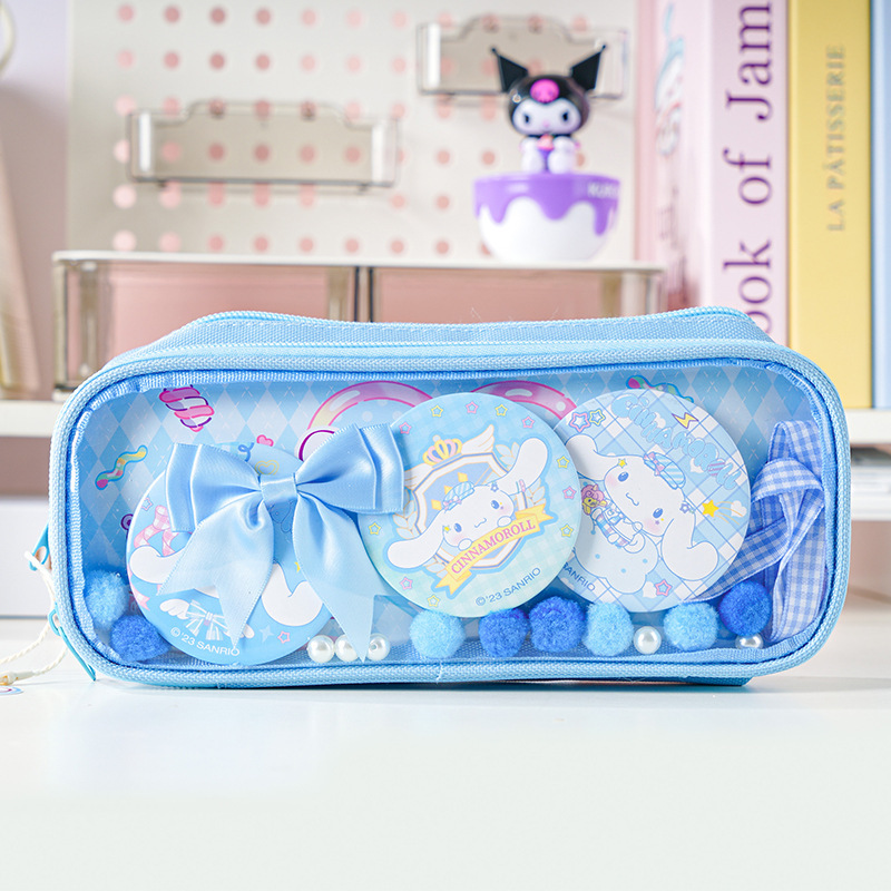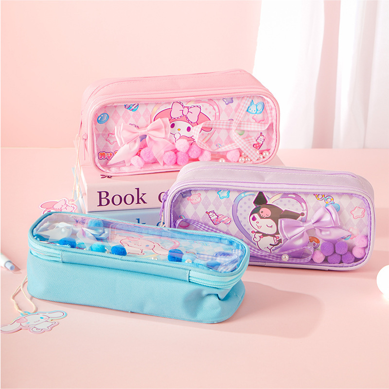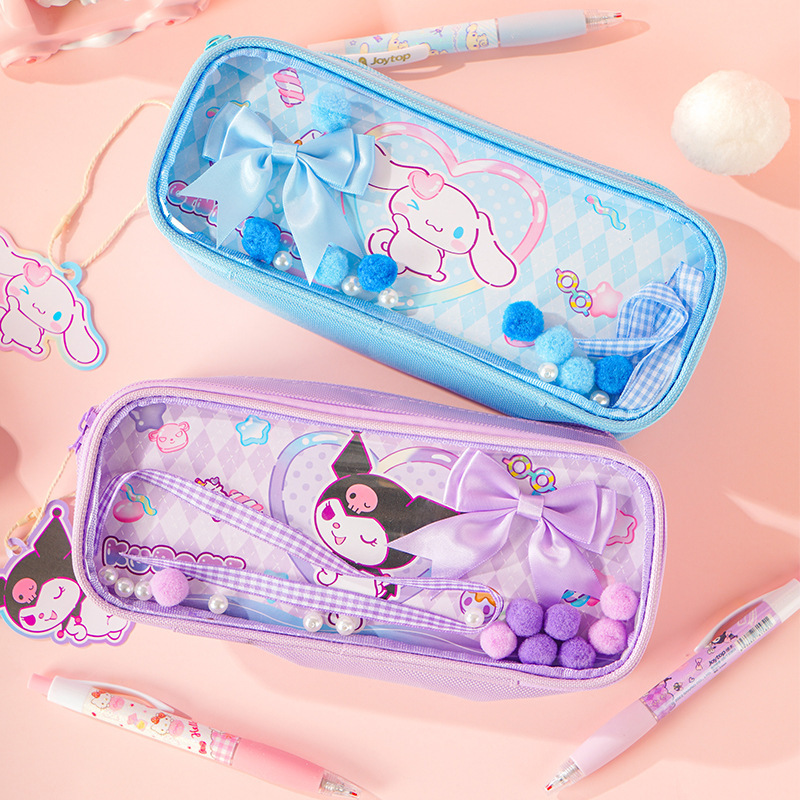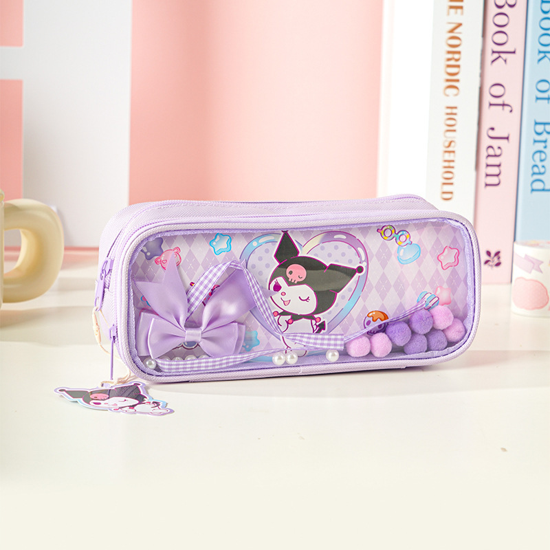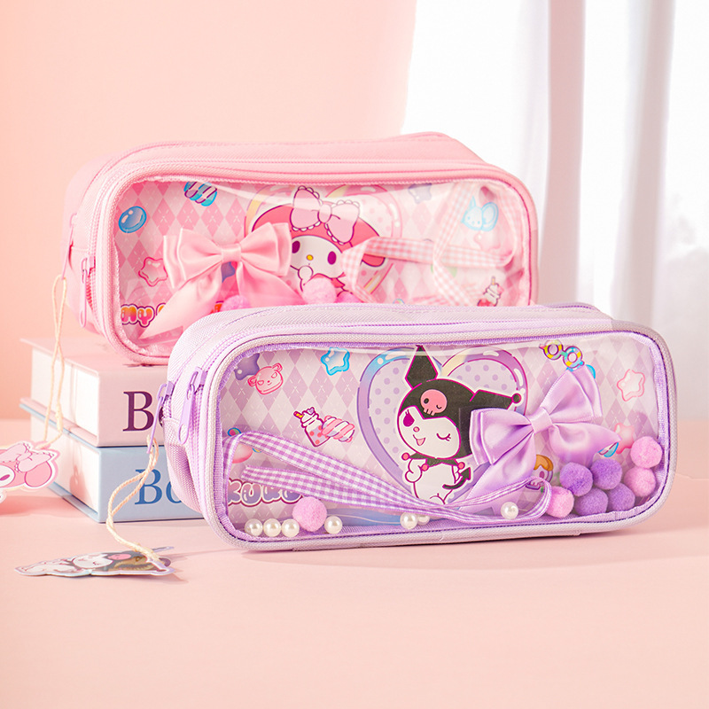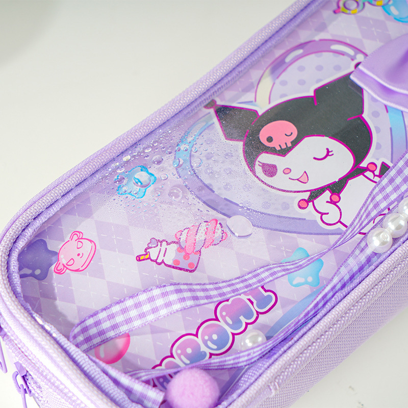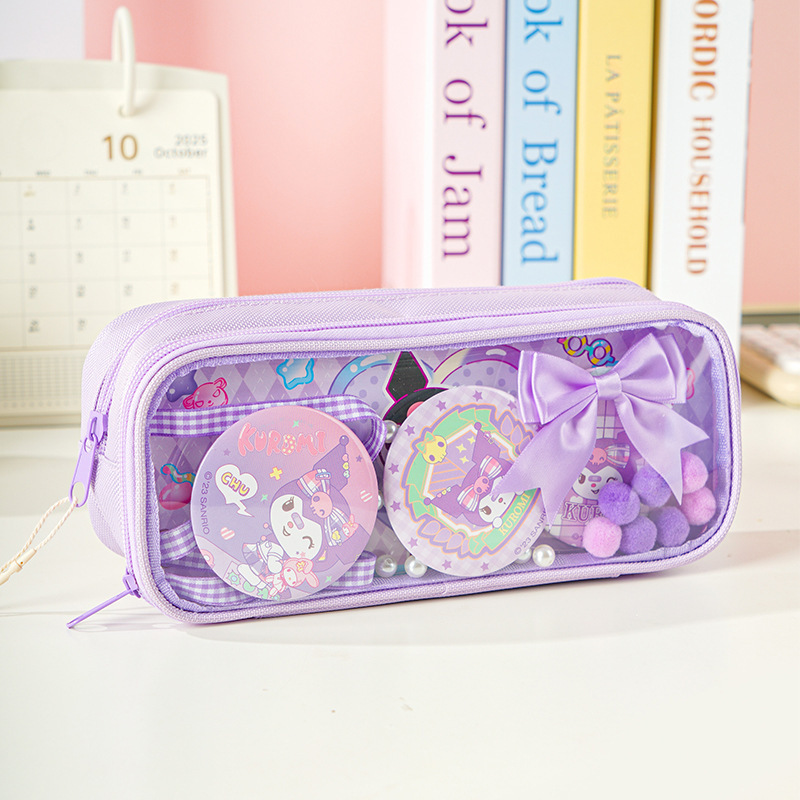 산리오 정품 공인 Kulomi 더블 레이어 연필 가방 대용량 투명 연필 가방 소녀 새로운 문구 연필 가방스토어 가기